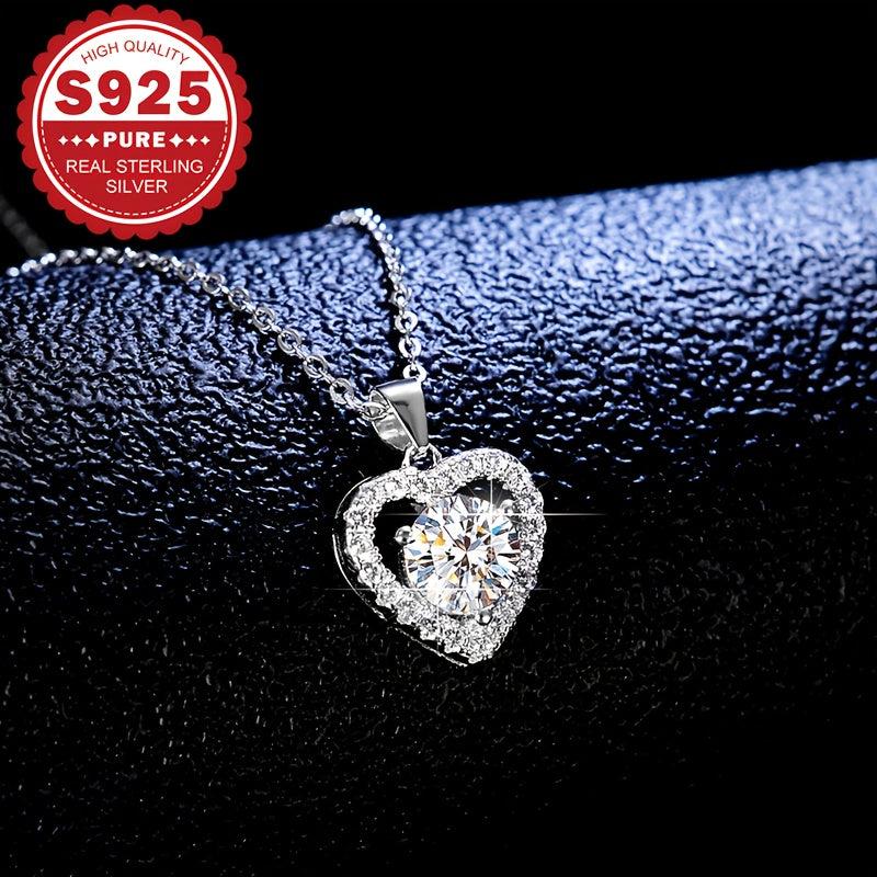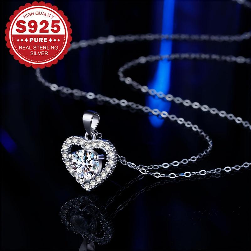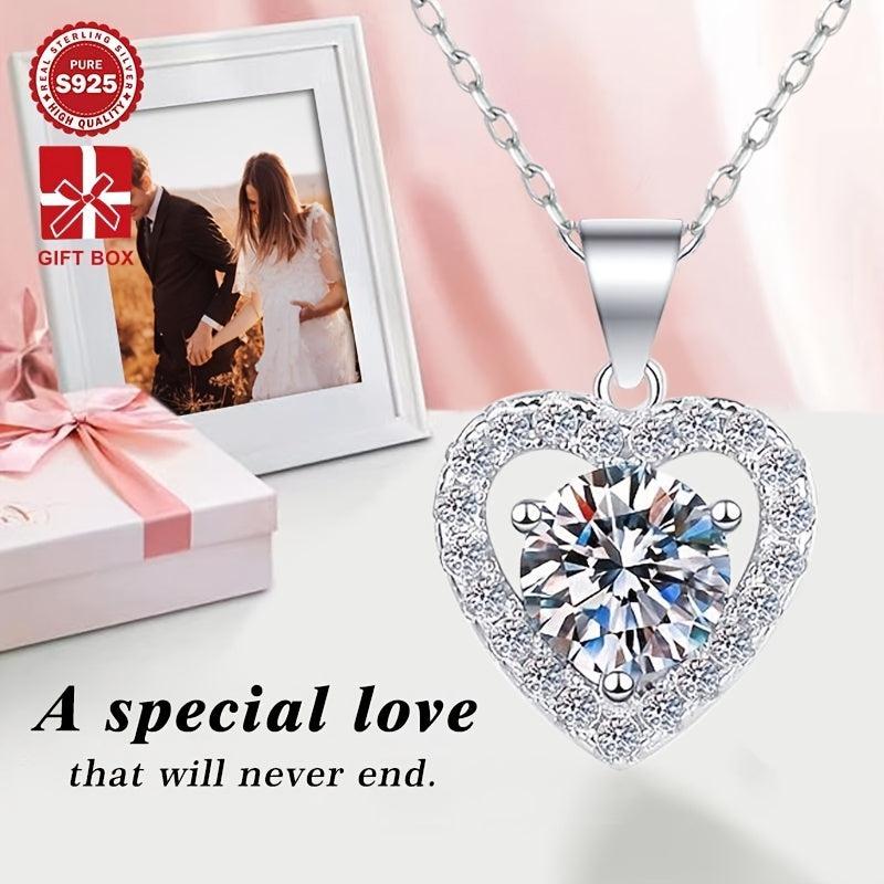 Show your love with this sparkling heart necklace made of 925 sterling silver. Perfect Valentine's gift for your girlfriend, wife, or soulmate. Hypoallergenic design with synthetic zirconia.
