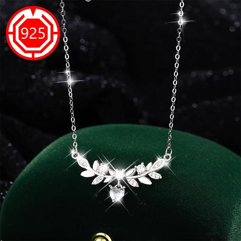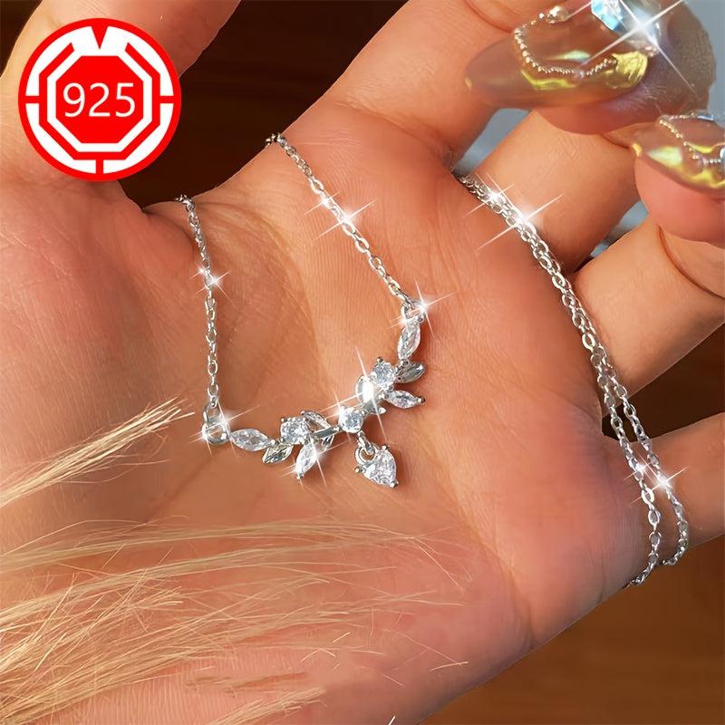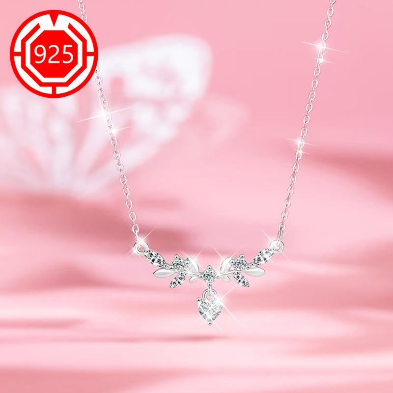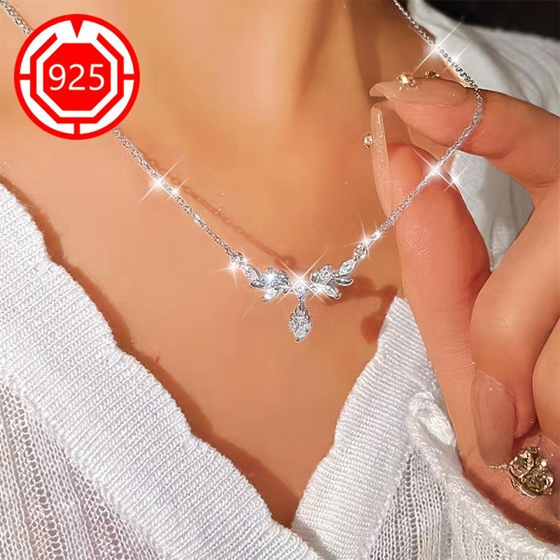 This 925 silver hypoallergenic necklace features a single piece women's heart teardrop flower pendant. It is a unique and versatile high-end collarbone chain, making it a perfect gift for couples.