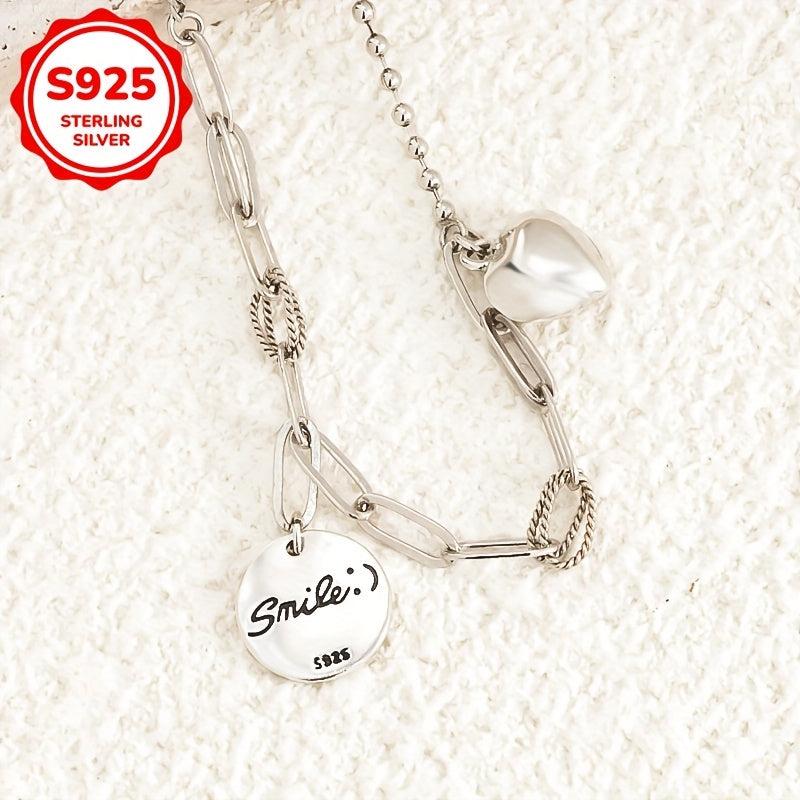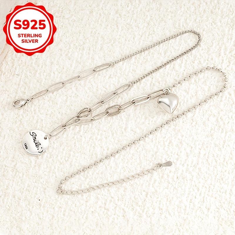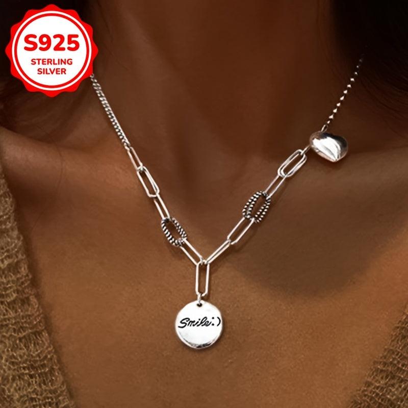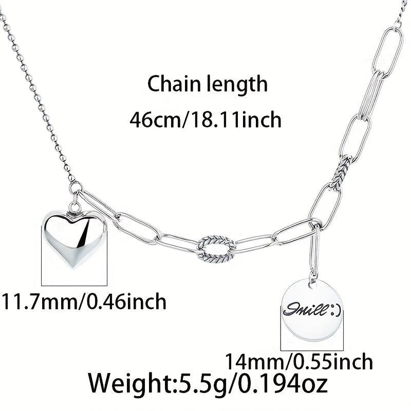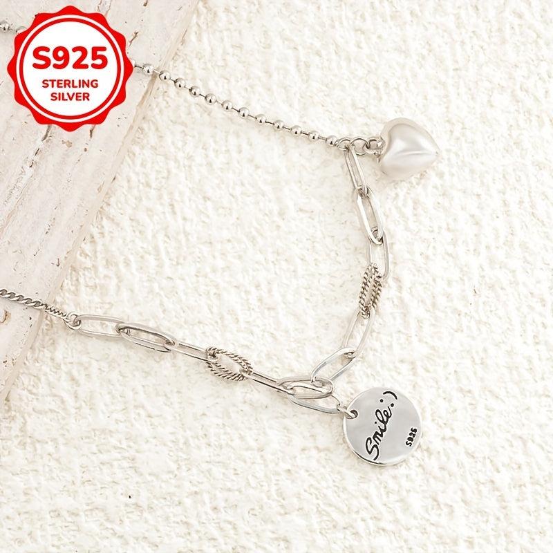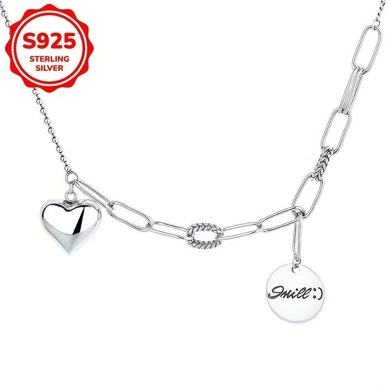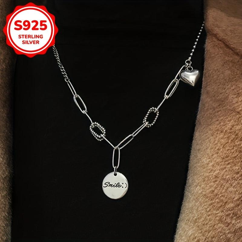 This pendant necklace boasts a stylish hip hop design with a touch of sweetness. Made with 925 silver, weighing 5.5g, it is perfect for daily wear, parties, gatherings, vacations, or as a gift.