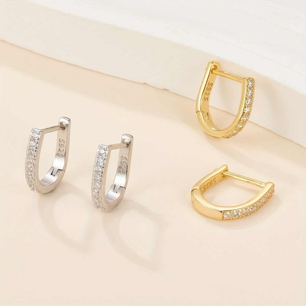 These sterling silver hoop earrings are elegantly designed with full zircon decoration, perfect for a delicate and minimalist style. They make a great gift for any female.