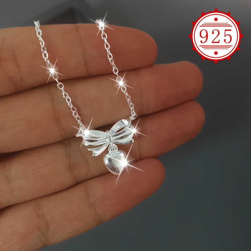 This elegant necklace features a bow design, making it perfect for daily wear, weddings, or banquets. Crafted with 925 silver, it is hypoallergenic and ideal for those with sensitive skin.