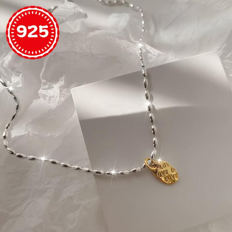 This 925 silver necklace features a unique design with a love letter oval pendant, making it perfect for gifting to couples or friends on special occasions.