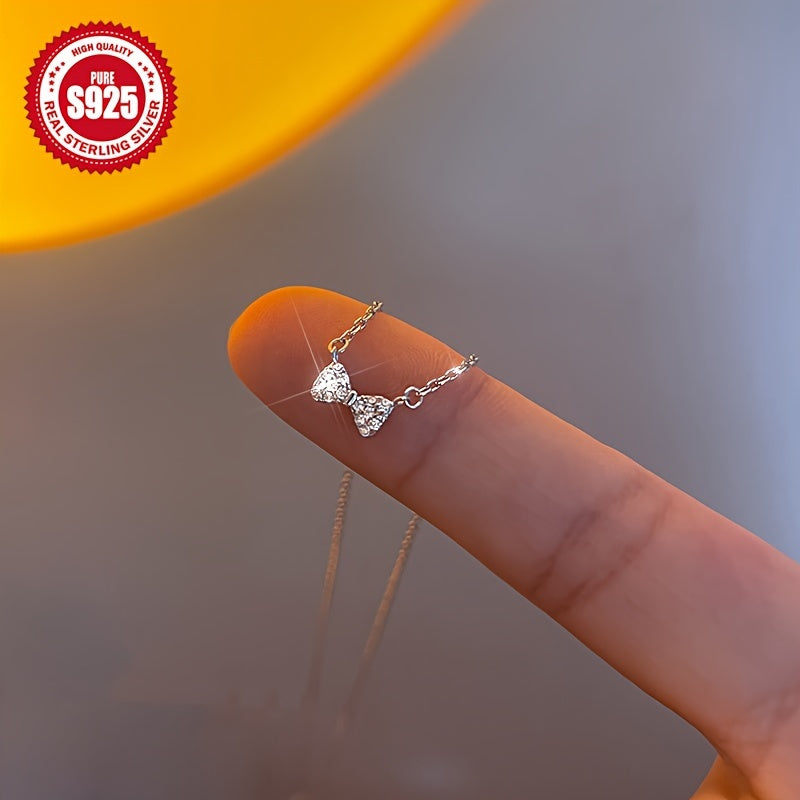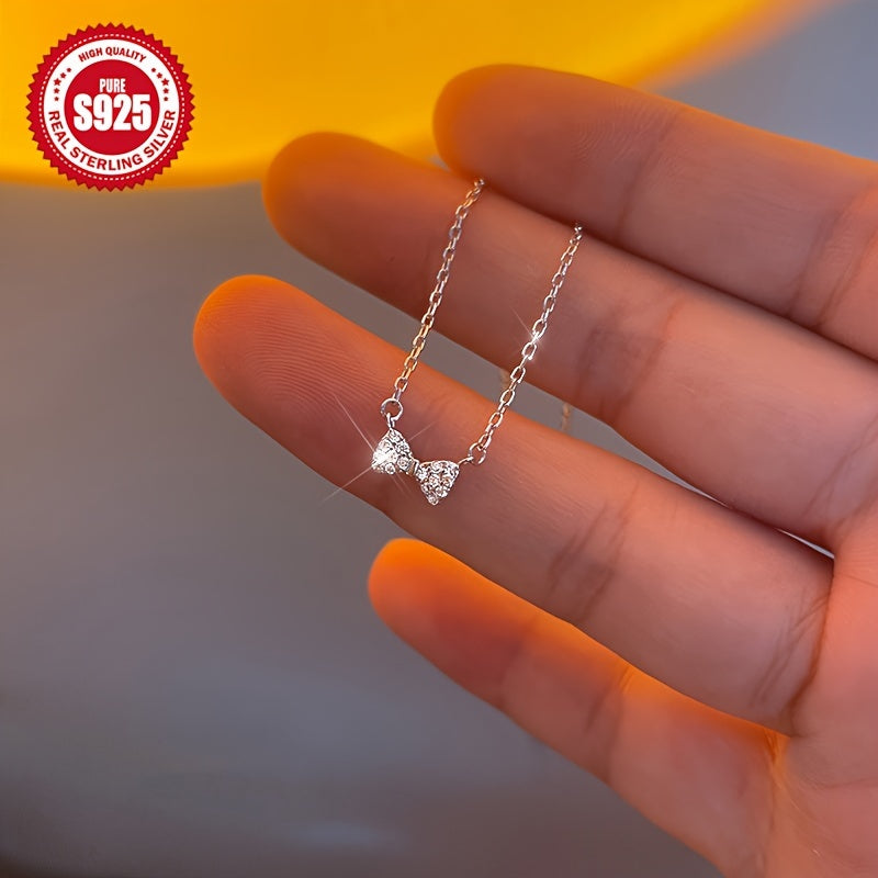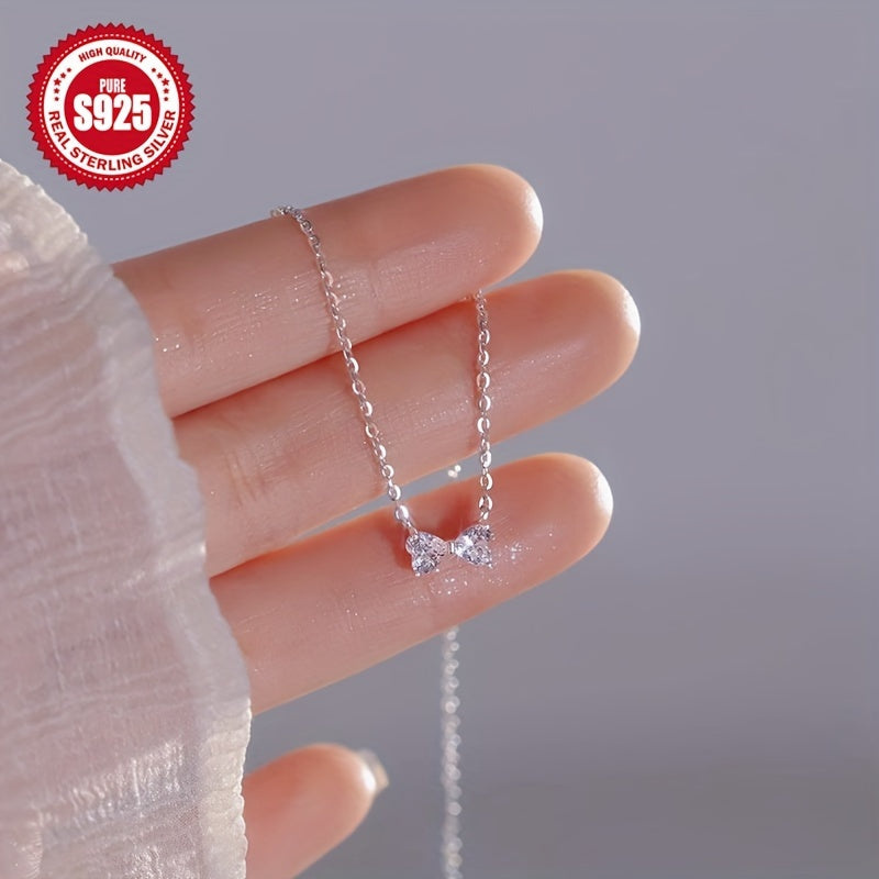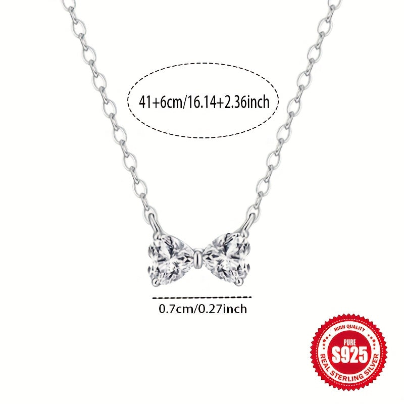 925 Silver Hypoallergenic Silvery Bow Necklace, Perfect Gift for Her
