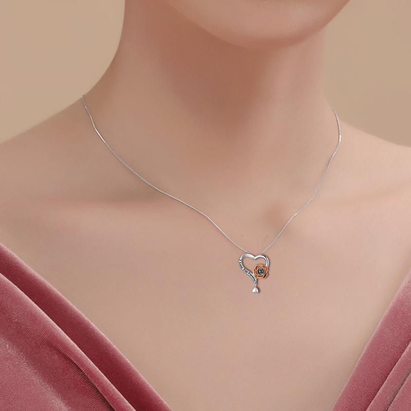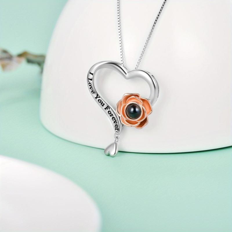 Express your love with this elegant necklace featuring a rose flower pendant that displays 'I Love You' in 100 languages. Made of high-quality 925 sterling silver, this necklace is a perfect gift for your loved one.