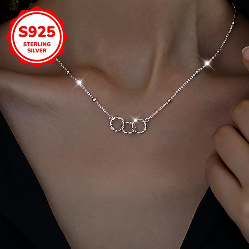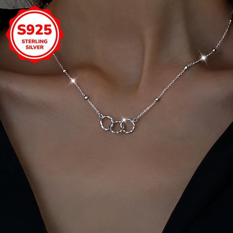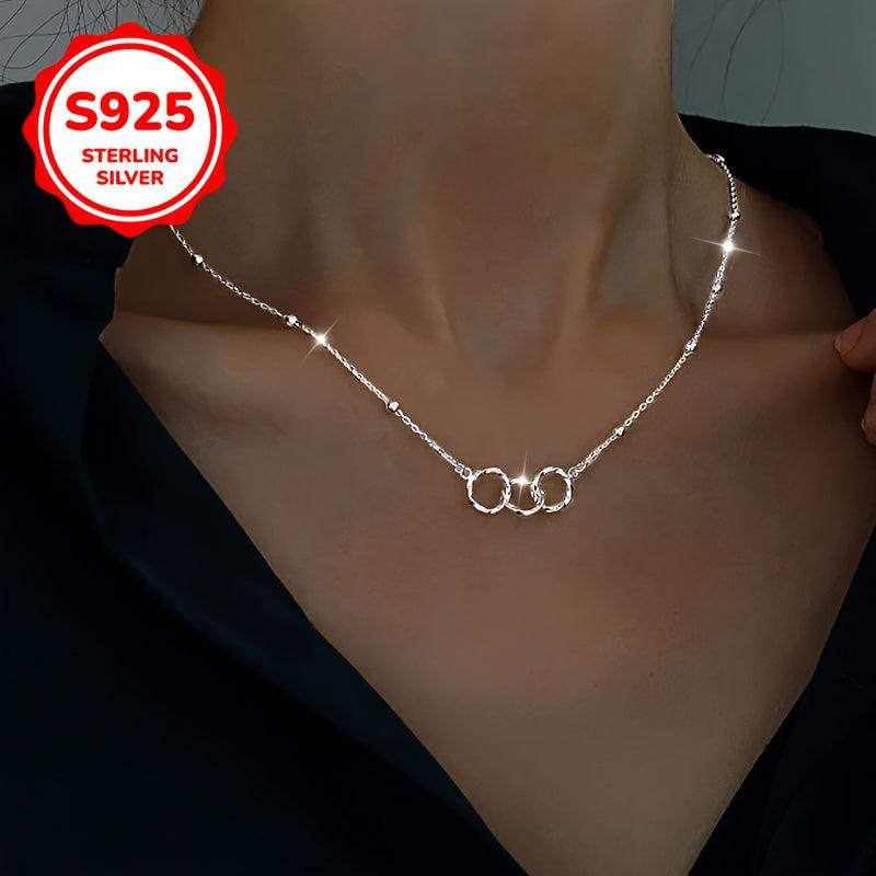 This 925 silver necklace is hypoallergenic and lightweight, making it perfect for couples or besties. It features an irregular triple ring chain design that is both fashionable and comfortable on the collarbone.