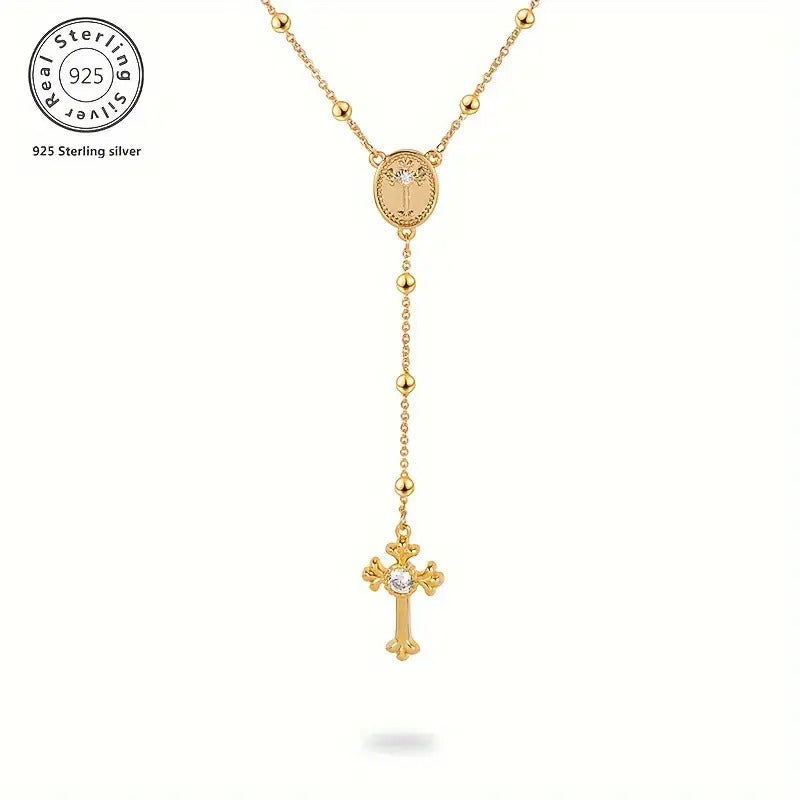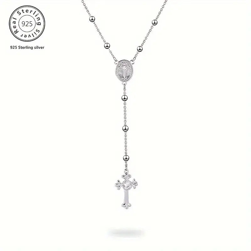 Elegant and luxurious Y necklace crafted from 925 sterling silver beads adorned with synthetic zirconia stones. Ideal for weddings, Christmas, and special occasions.