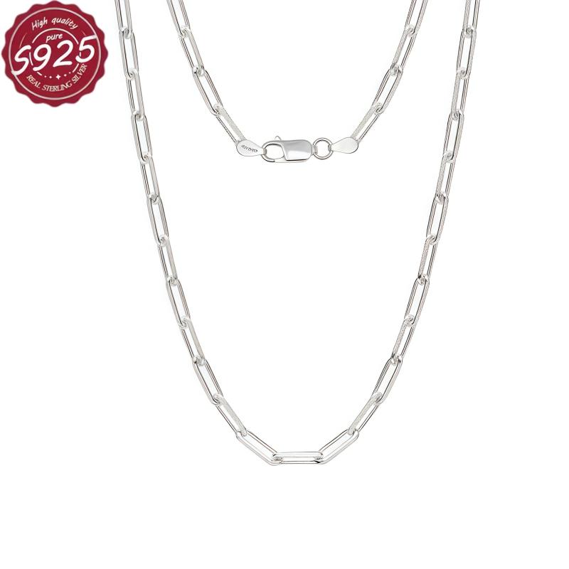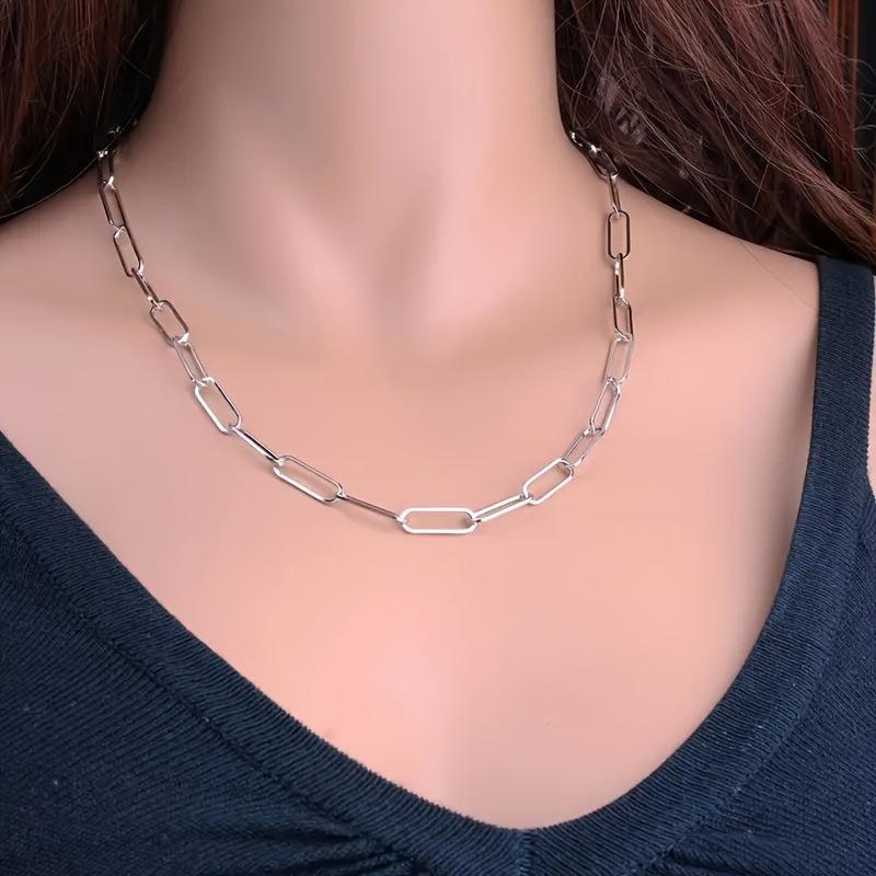 This exquisite paper clip necklace is made of 925 sterling silver and is perfect for both men and women. It features a solid cut design and is an ideal gift for Valentine's Day, Christmas, or anniversaries.