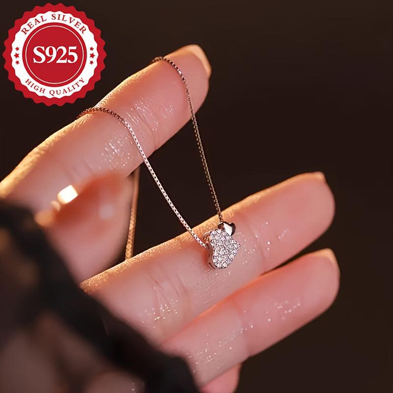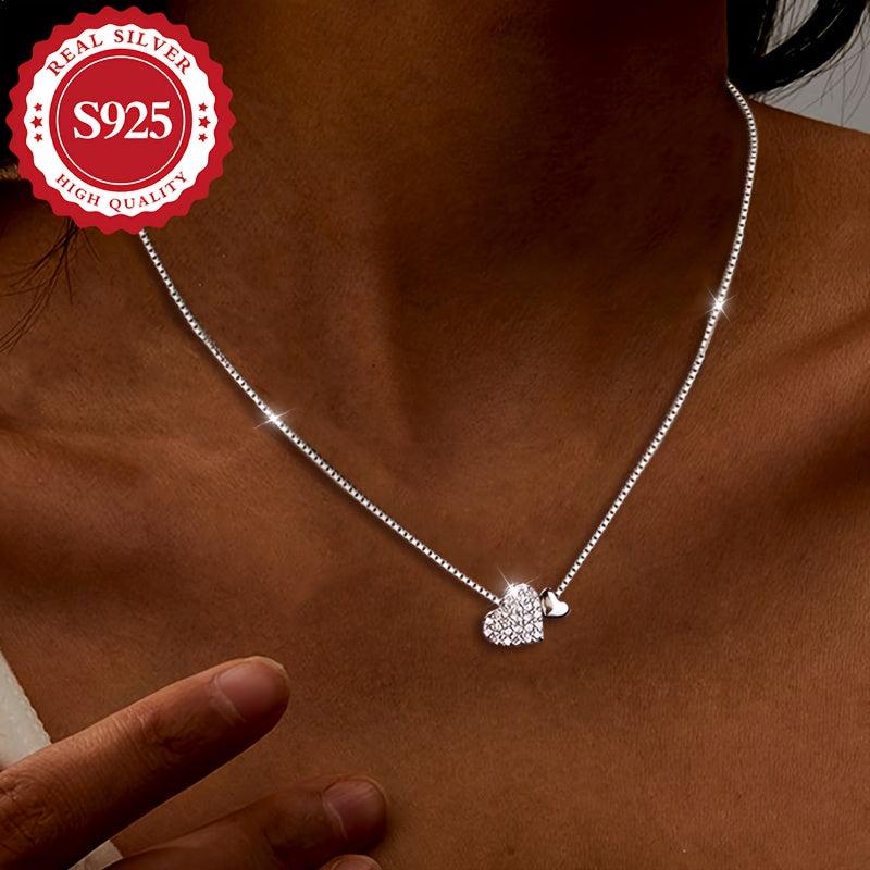 925 Silver Love Zirconia Necklace Small Party Low Allergy