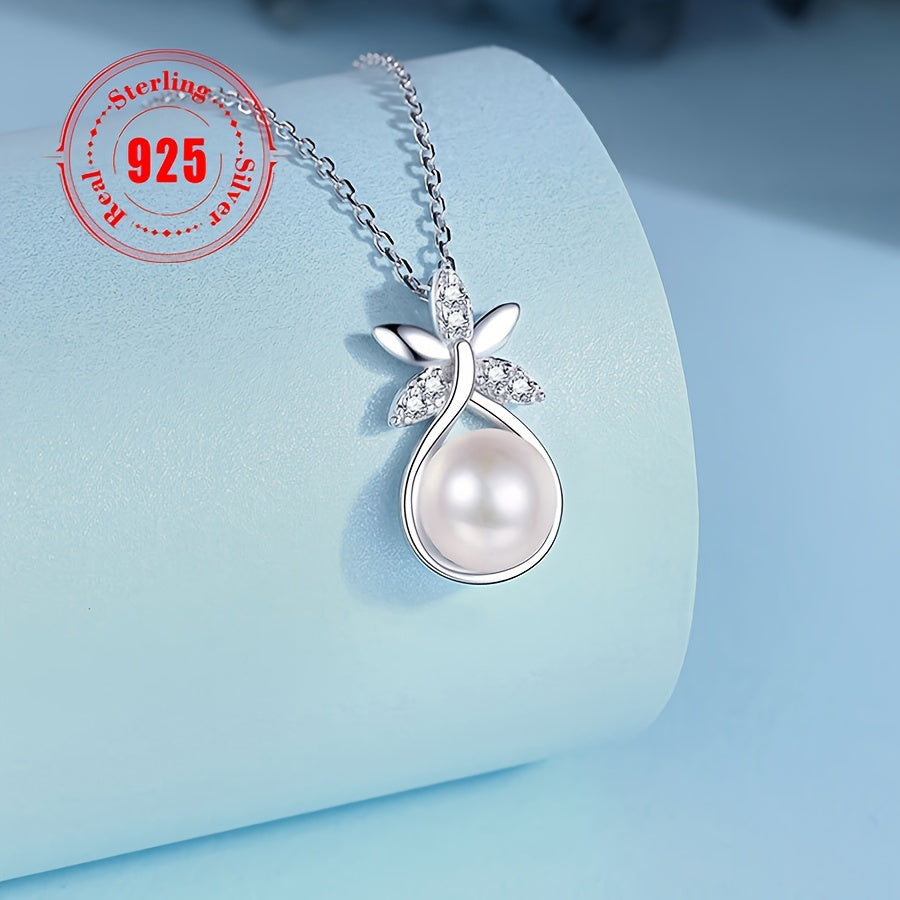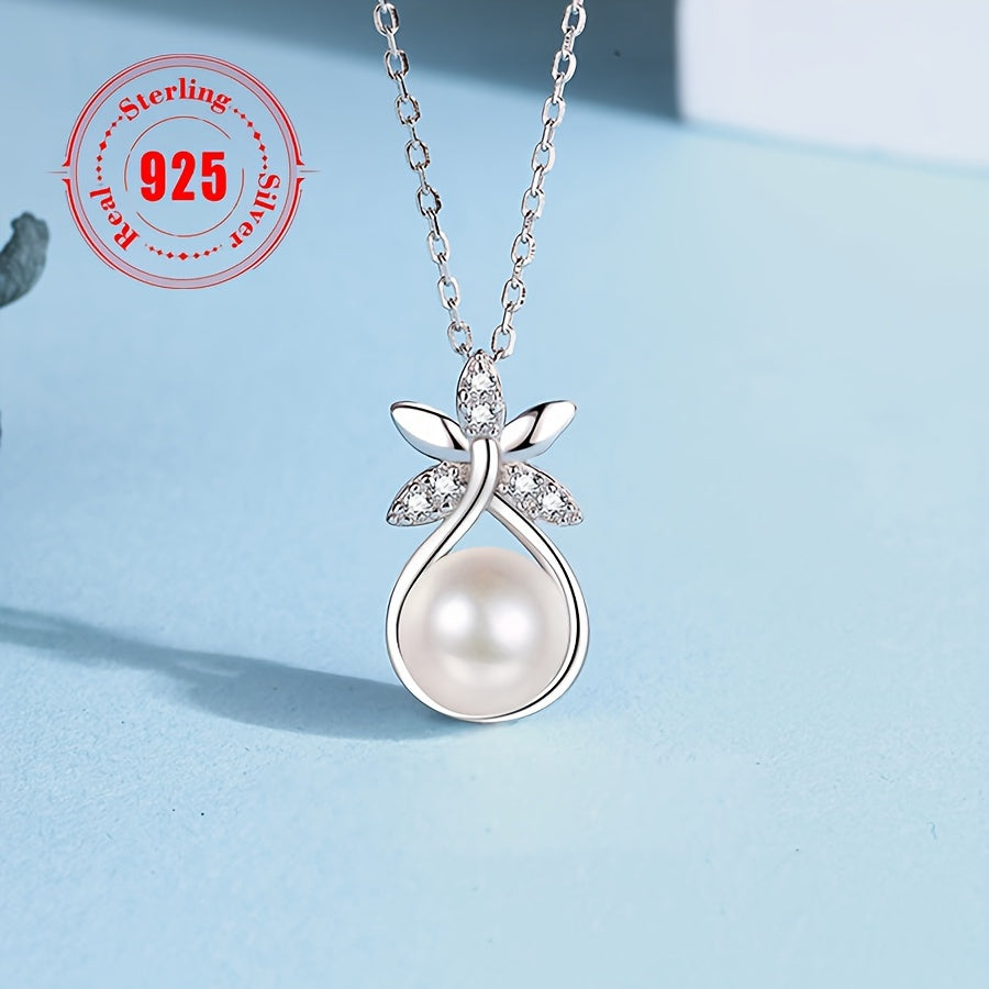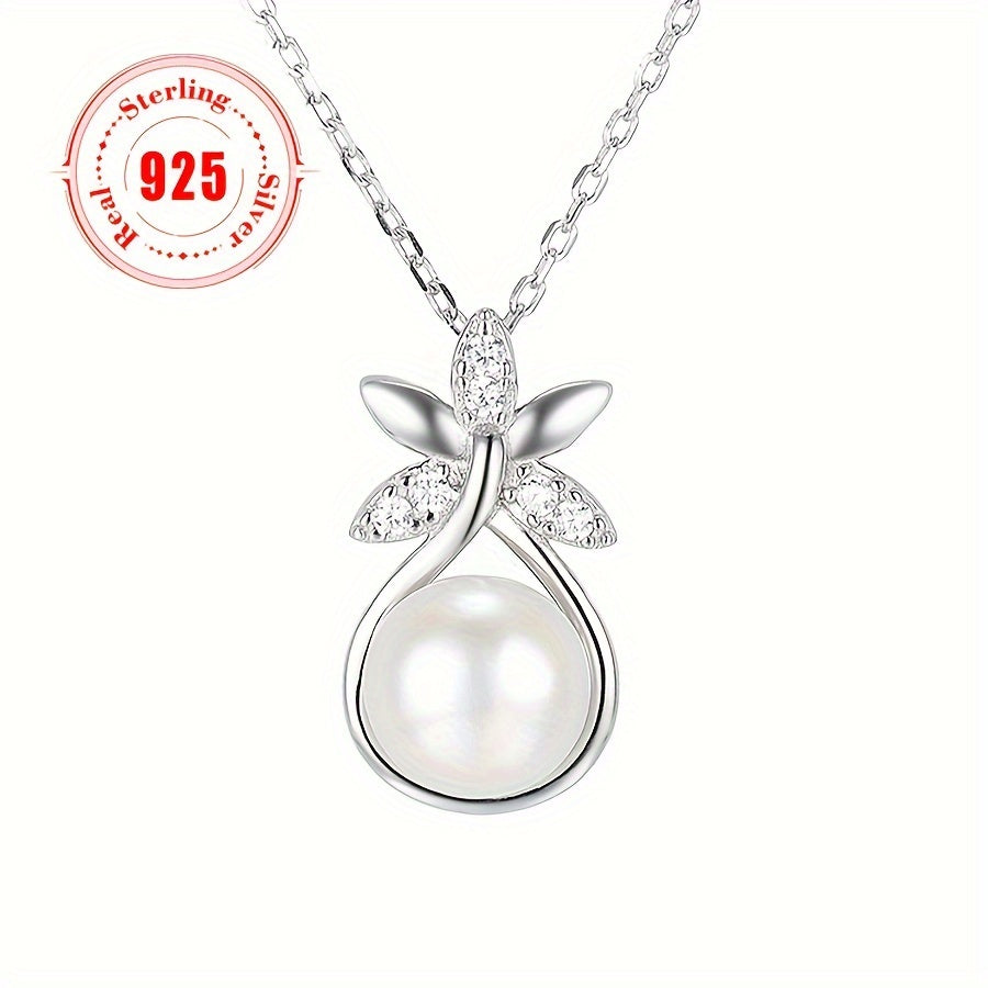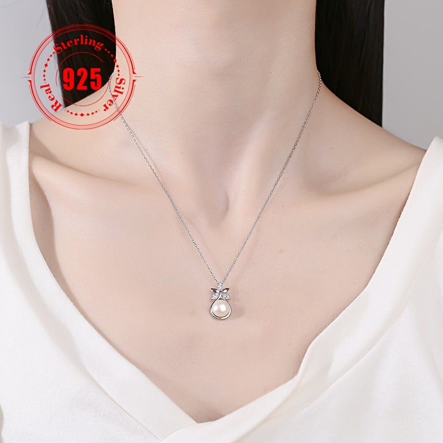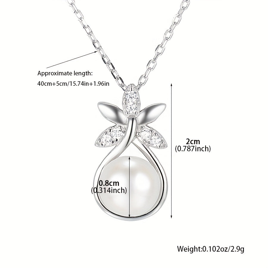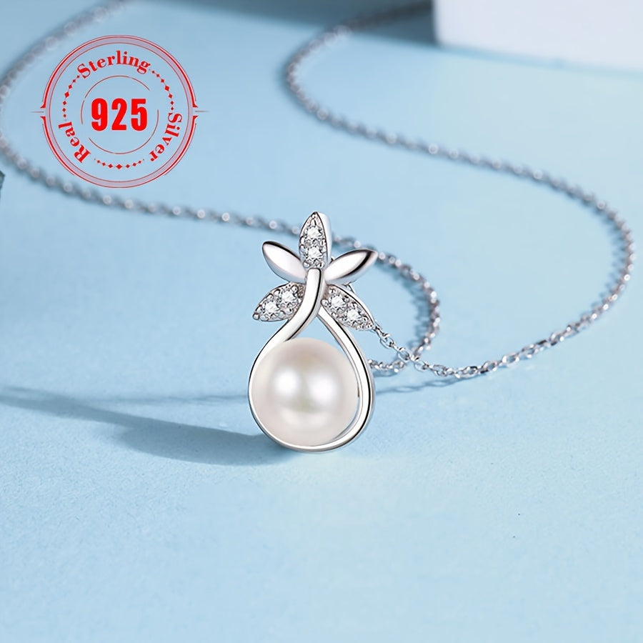 Elegant 925 silver pendant featuring a maple leaf design with inlaid synthetic zirconia pearl, perfect for formal events like banquets and weddings.