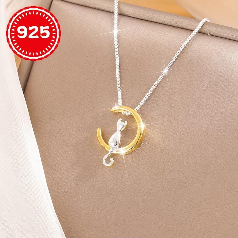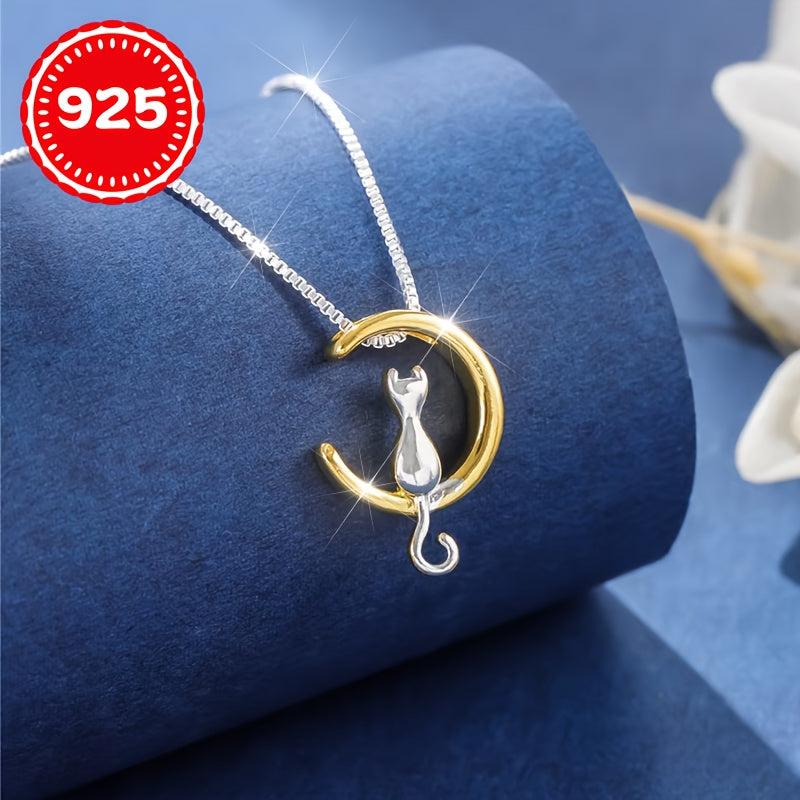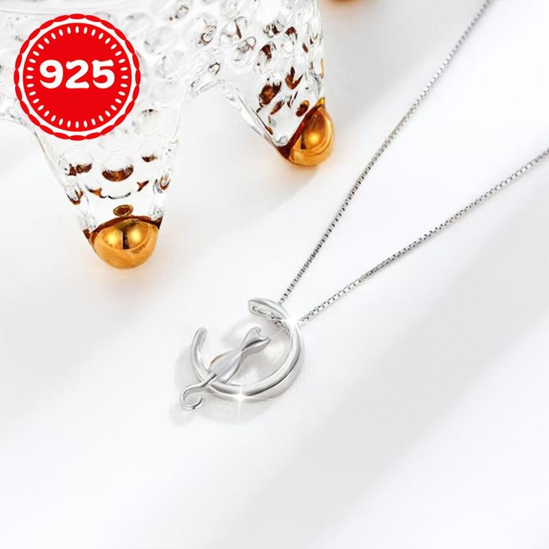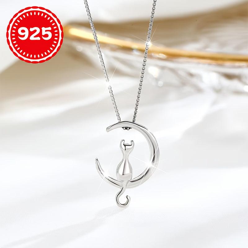 This beautiful necklace features a moon cat pendant made of 925 silver. It is hypoallergenic and perfect for women who want to add a touch of elegance to their look. The necklace is designed to sit delicately on the collarbone, making it an ideal gift for any cat lover.
