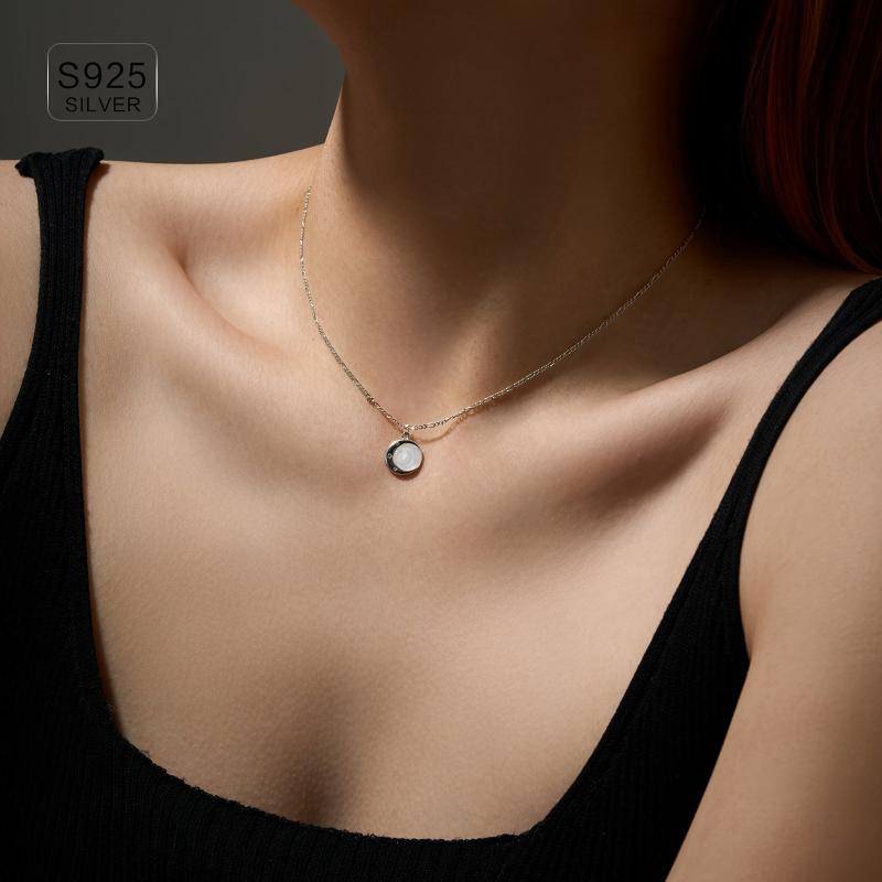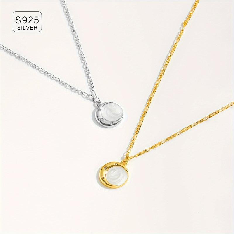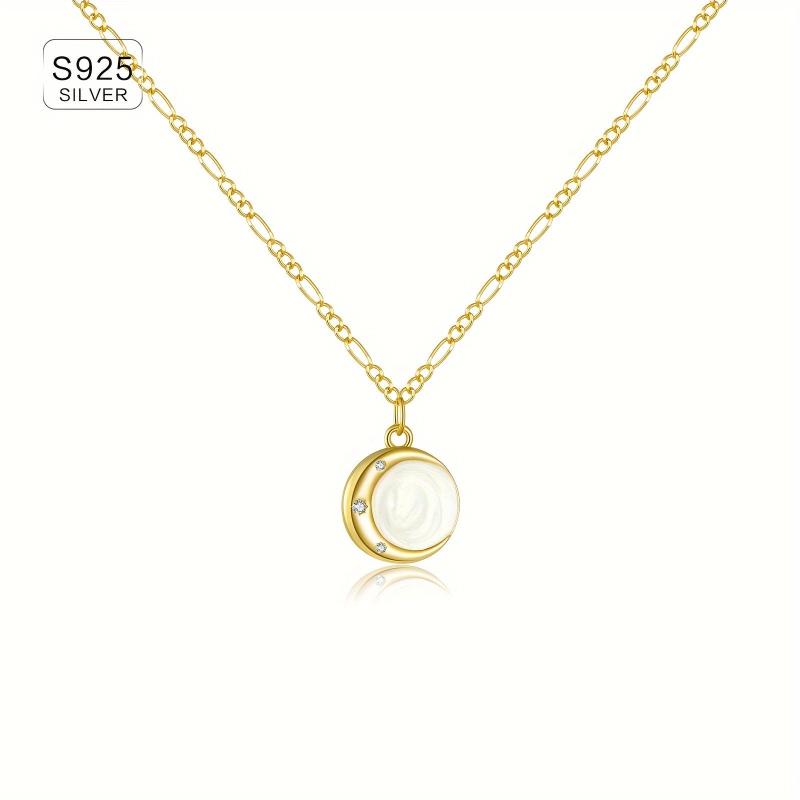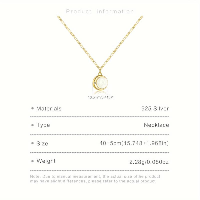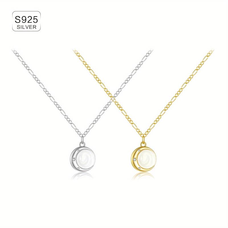 Elegant 925 sterling silver necklace featuring a crescent moon pendant adorned with sparkling cubic zirconia stones. This necklace is perfect for both casual wear and special occasions, making it an ideal gift for any jewelry lover.