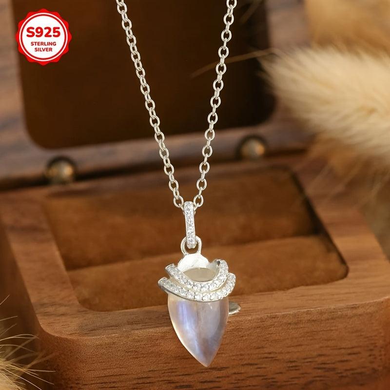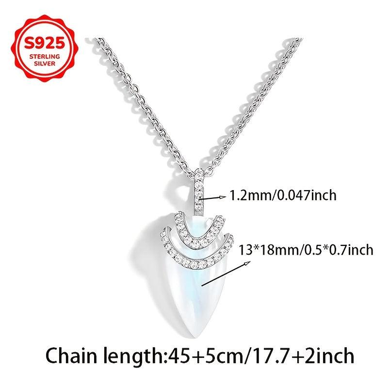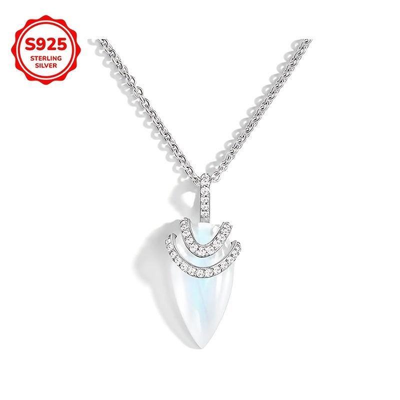 Elegant pendant necklace featuring moonstone inlaid with synthetic zirconia. Perfect for daily wear or as a special gift. Silver plated for a luxurious finish.