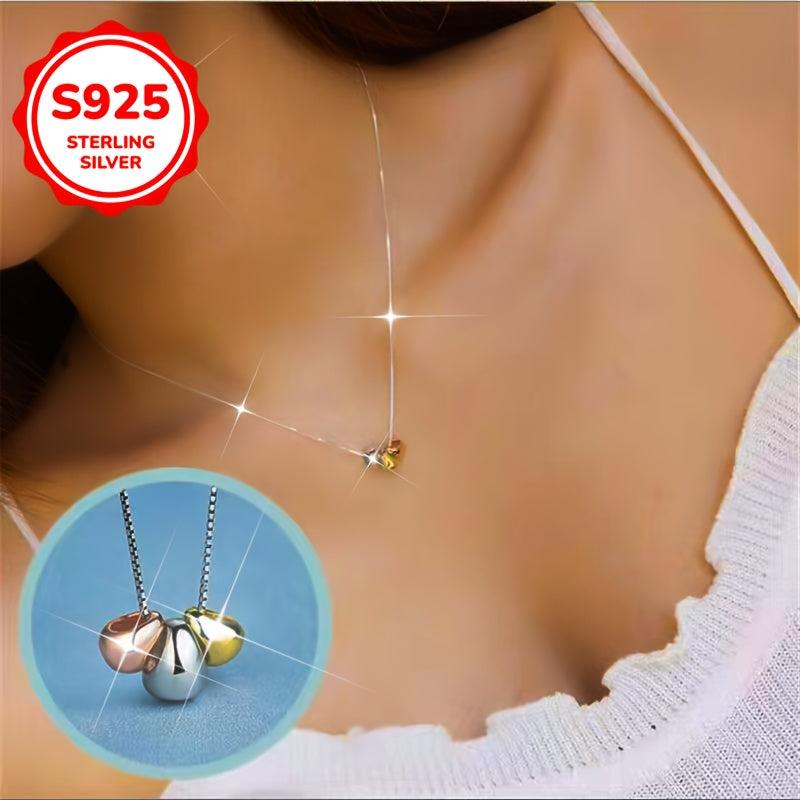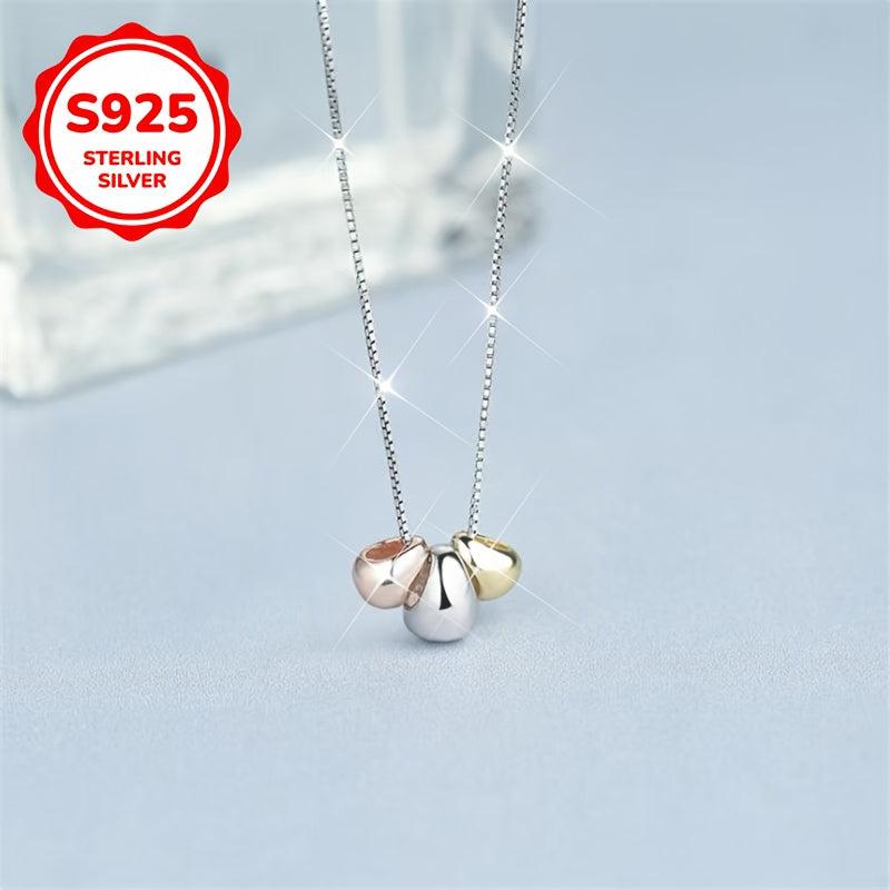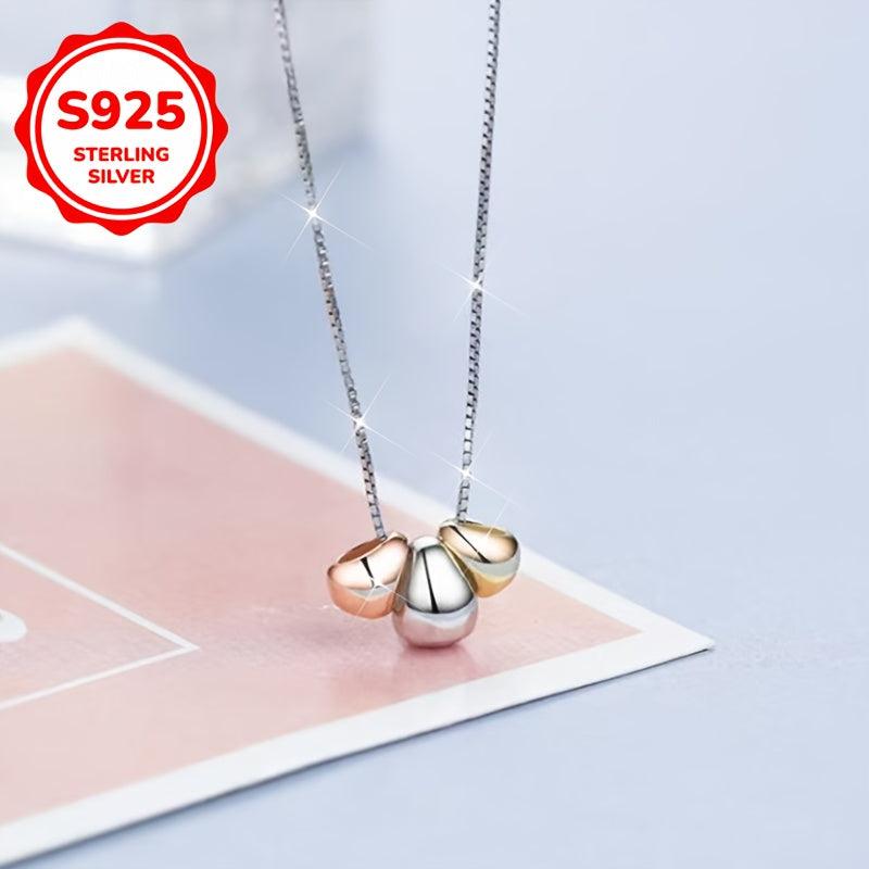 This hypoallergenic necklace features a fashionable design with three small golden bean pendants on an oval chain. It is sweet and stylish, perfect for women's clavicle chain accessory. Ideal as a gift.
