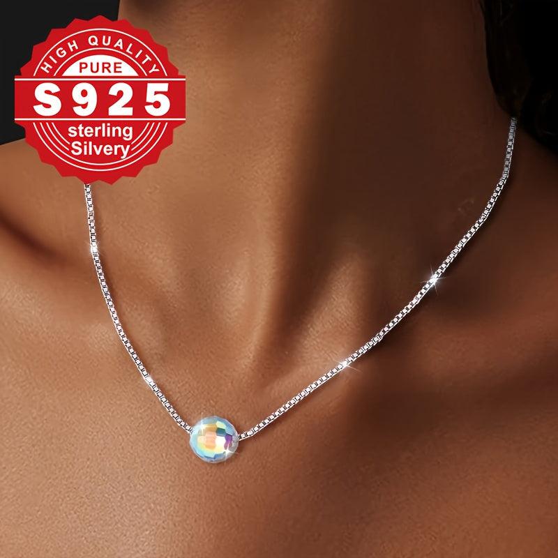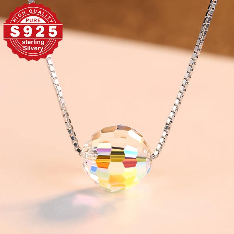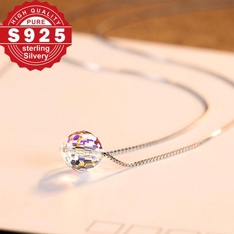 925 Silver Necklace Women Colorful Faceted Pendant Hypoallergenic
