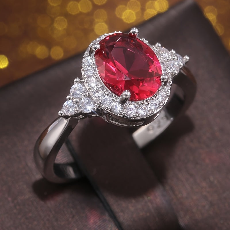 Stylish 925 silver plated oval cut zircon ring for women, perfect for weddings and engagements.