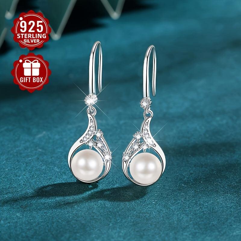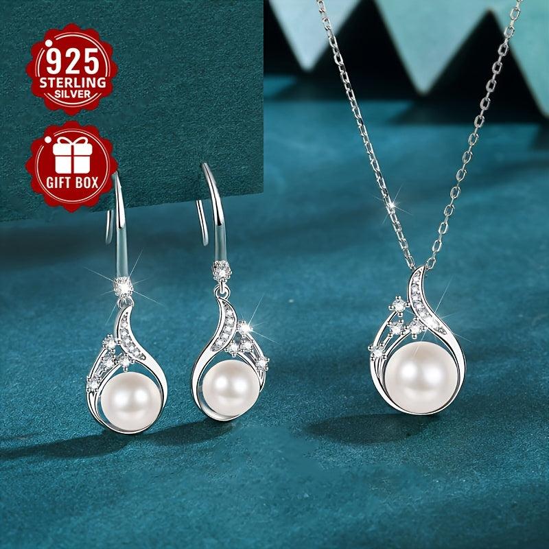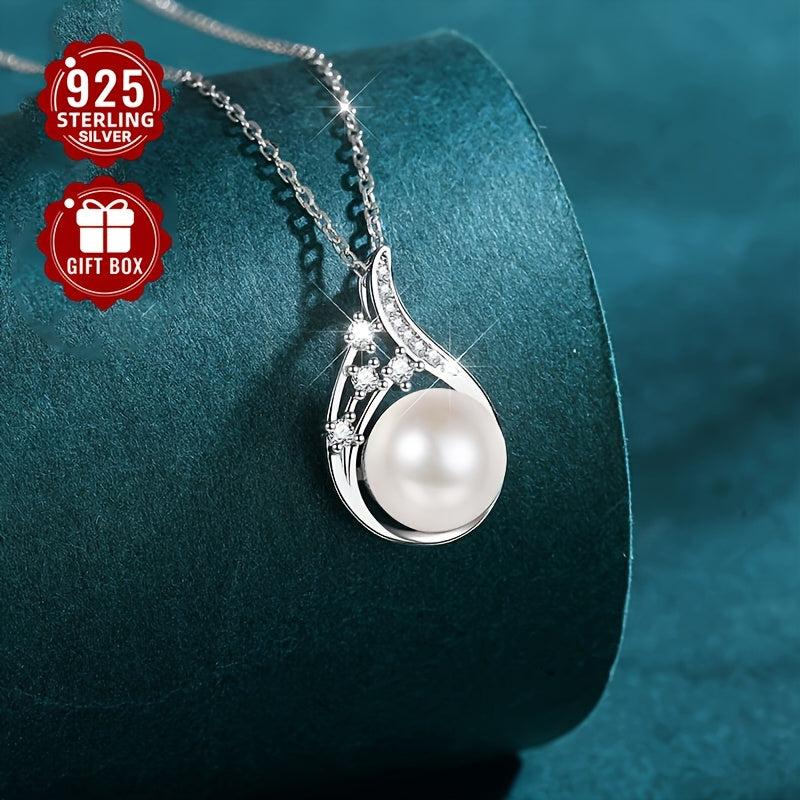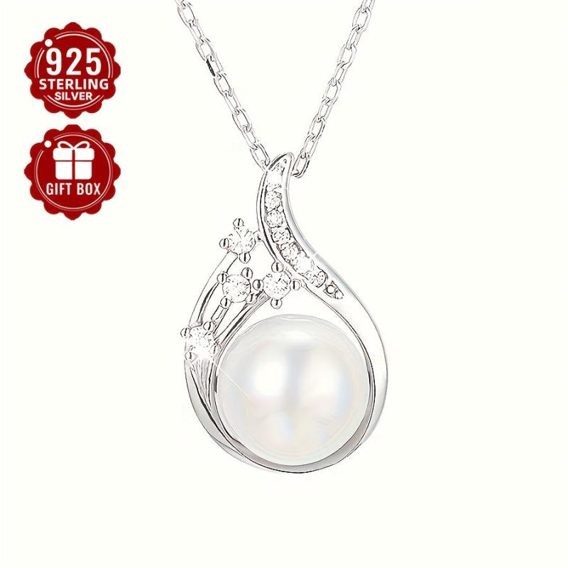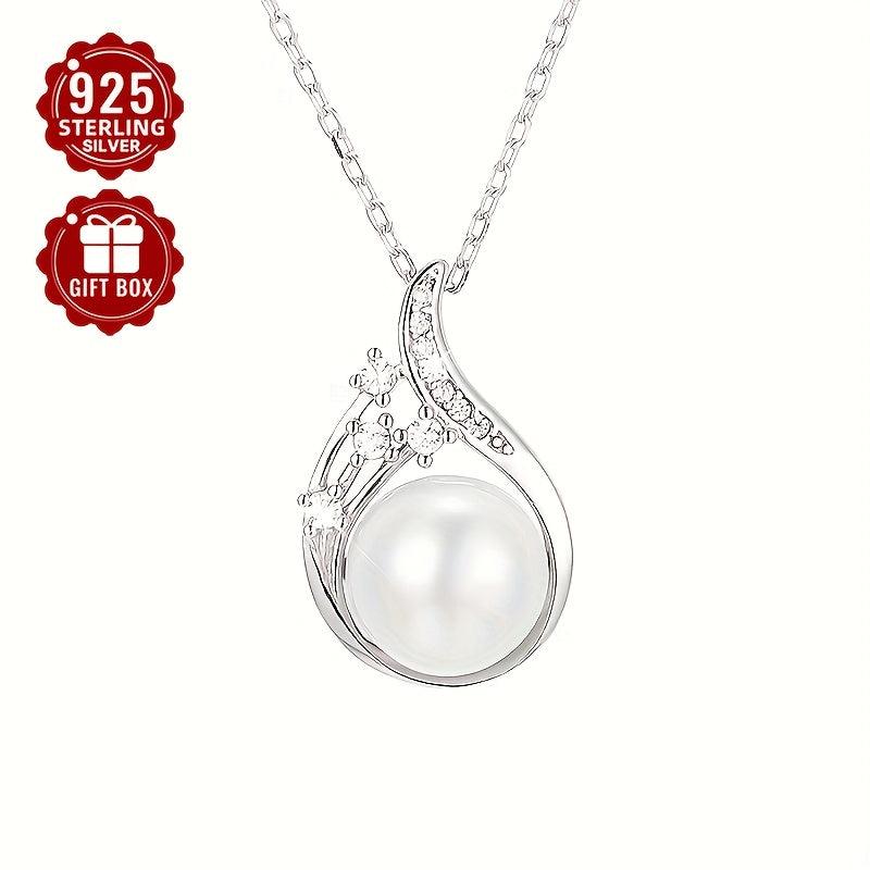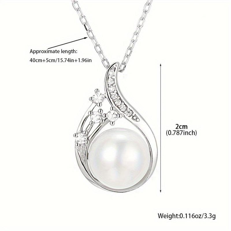 Elegant and stylish pendant featuring a silvery imitation pearl encrusted with synthetic zirconia in a stunning water drop shape. Perfect gift for your loved one on holidays or anniversaries.