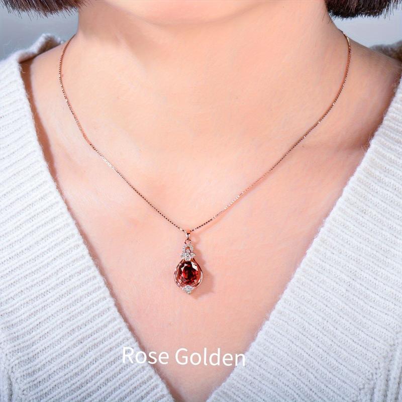 This stunning pendant necklace features a natural rose red garnet in an oval shape, set in 925 sterling silver. It is hypoallergenic and makes the perfect gift for moms.
