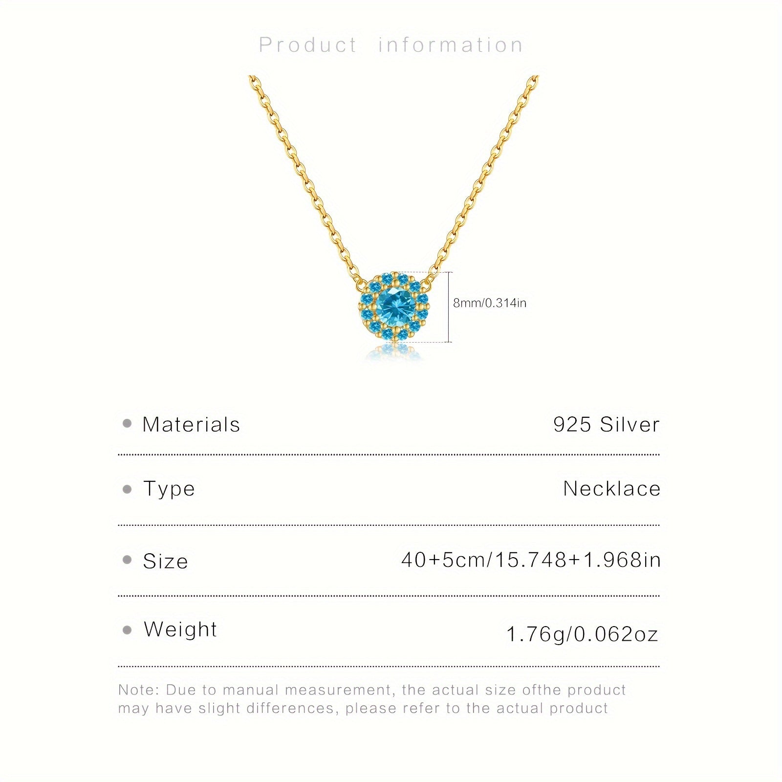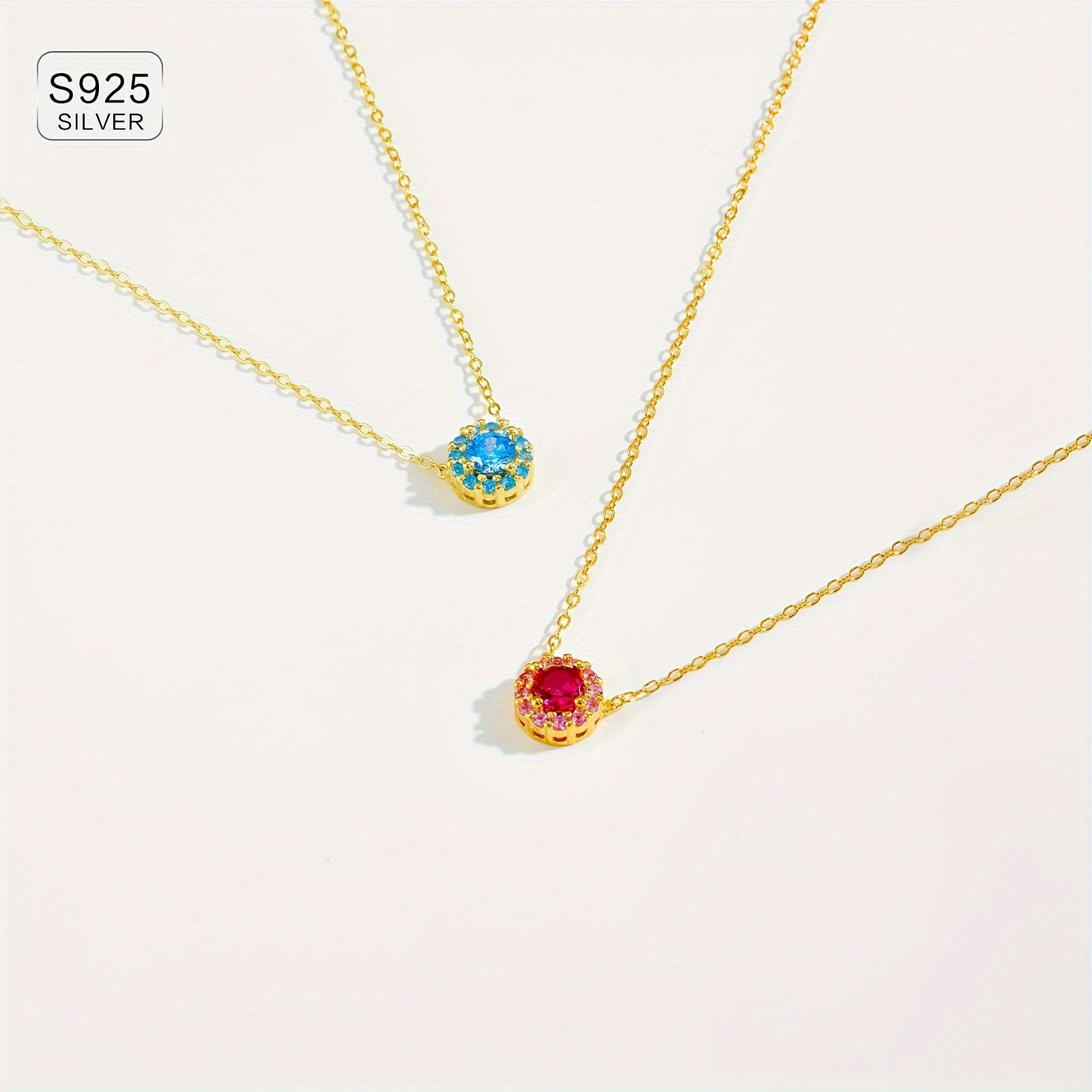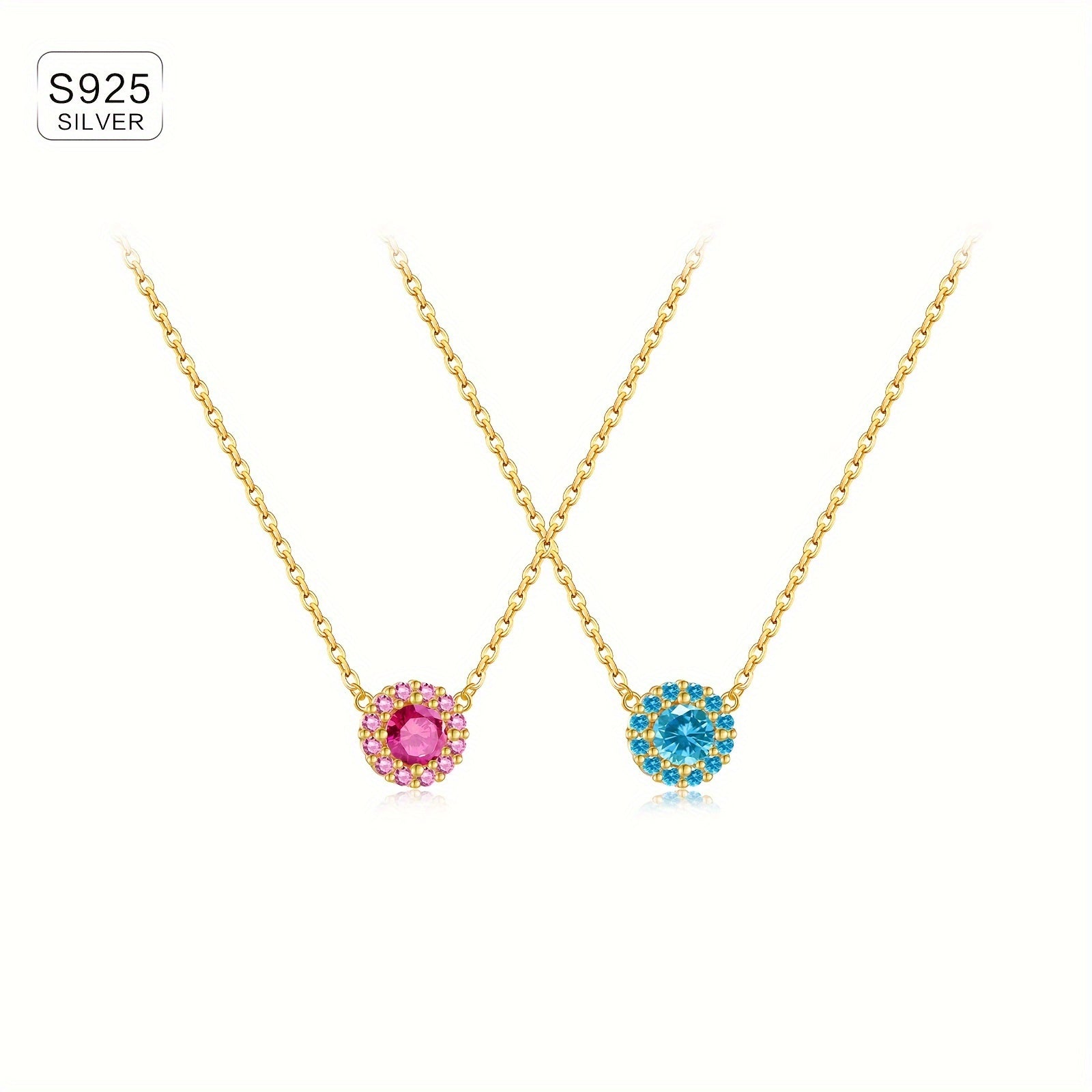 Elegant 925 sterling silver necklace with vibrant colorful cubic zirconia stones, hypoallergenic and anti-sensitive, 18K golden plated chain.