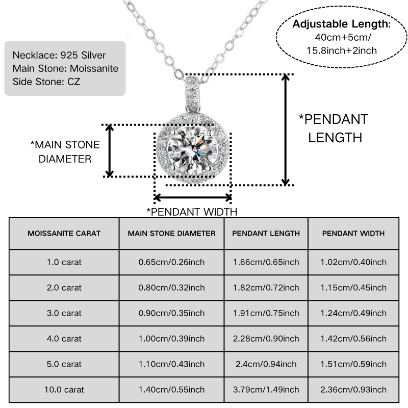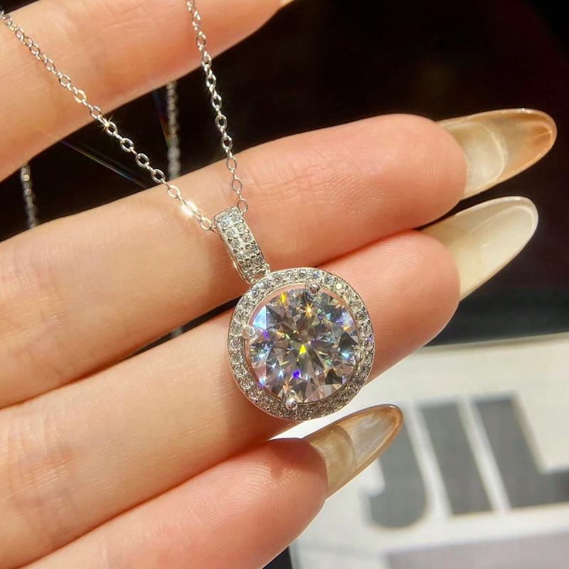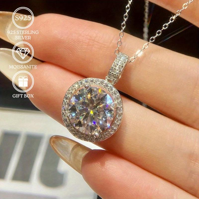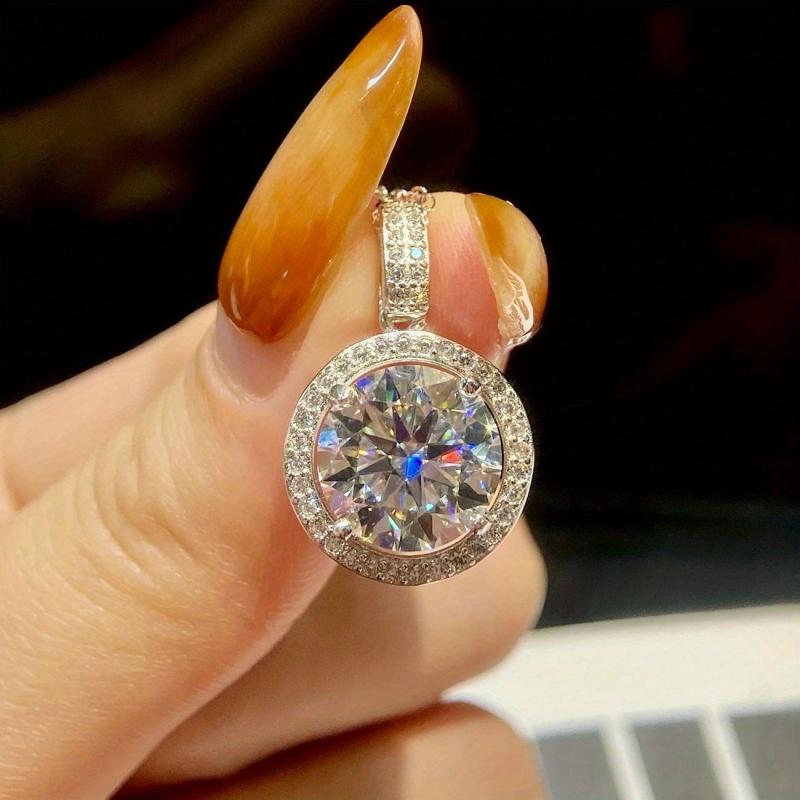 Elegant pendant necklace made of 925 silver with a bright moissanite stone in sizes ranging from 1 to 10 carats, perfect for parties and dates.