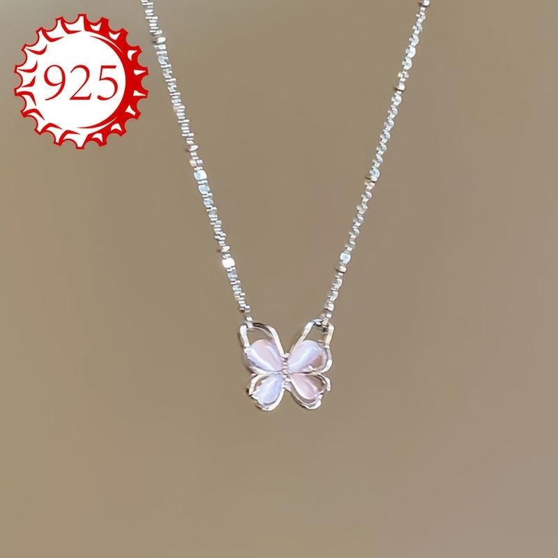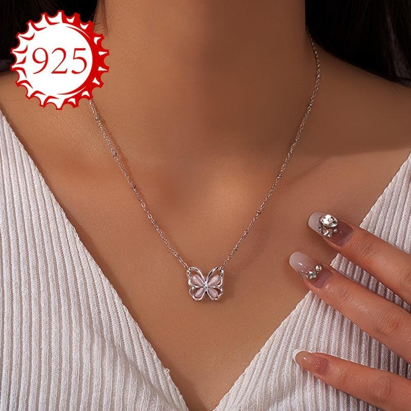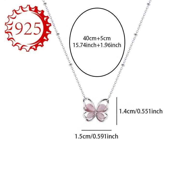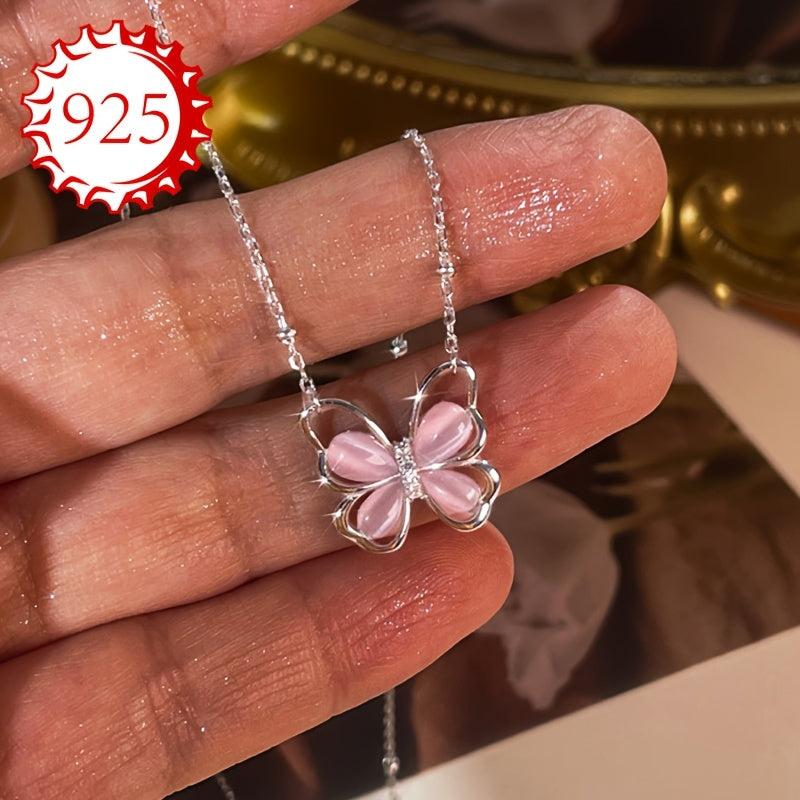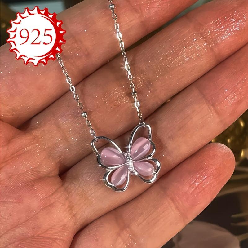 Elevate your style with this hypoallergenic pendant necklace featuring a pink cat eye butterfly design. Perfect for all seasons, this high-end collarbone chain adds a fashionable touch to any outfit.