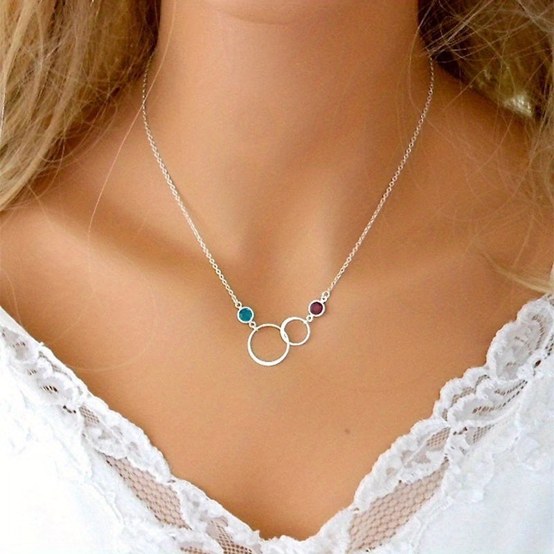 Add an elegant touch to your daily outfits with this double ring gemstone pendant necklace. The 925 silver plating adds a luxurious shine to the piece, making it perfect for daily casual wear.