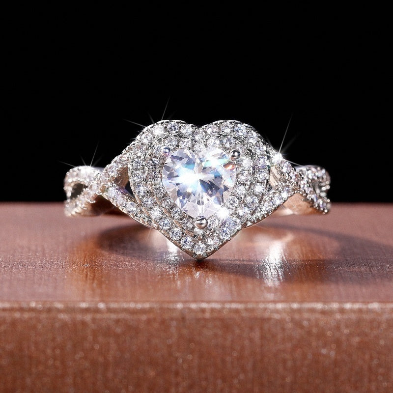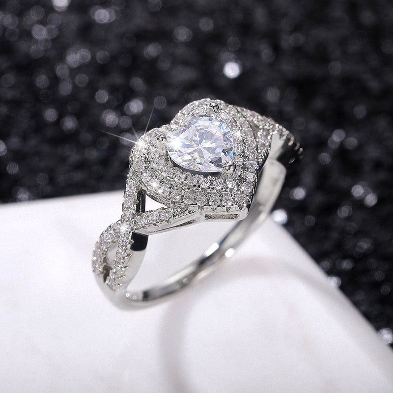 This beautiful heart-shaped ring features a zircon gemstone set in 925 silver plating. Perfect for weddings or everyday wear.