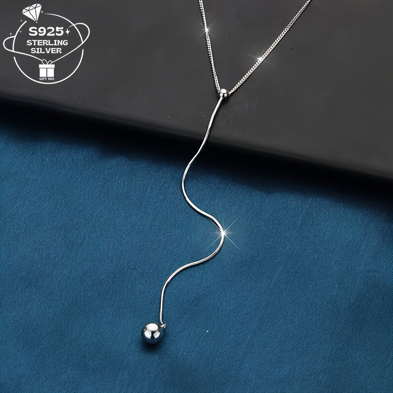 Elegantly crafted 925 silver necklace for women, featuring round ball design. This Y shaped collar chain is a classic accessory that adds a touch of sophistication to any outfit.