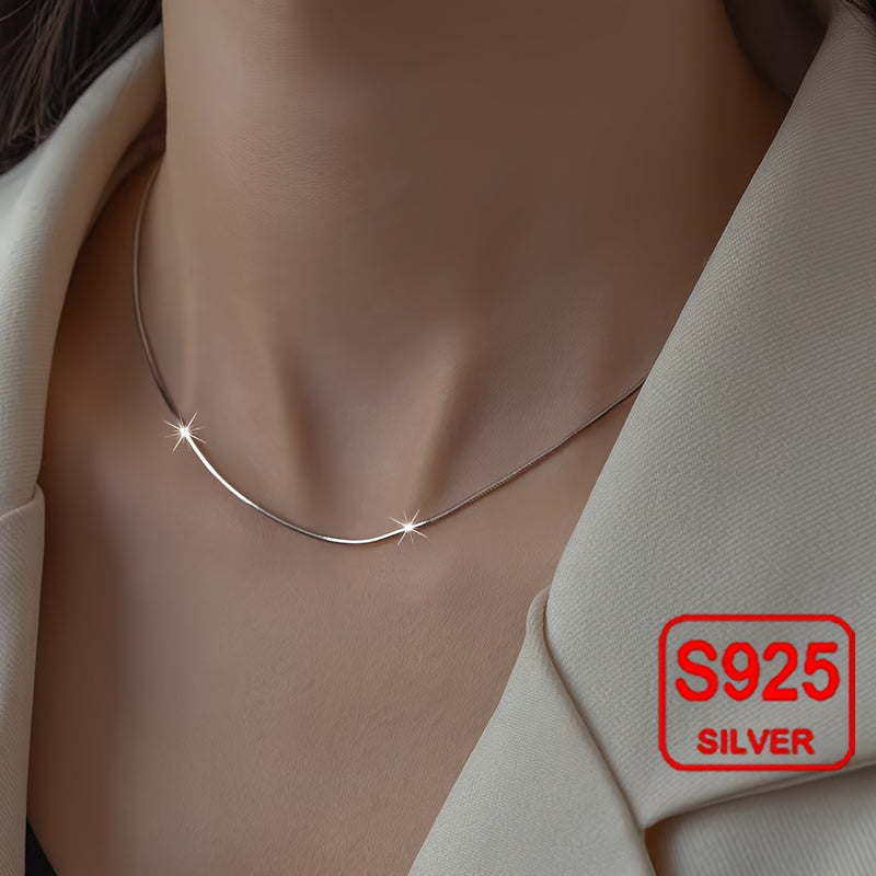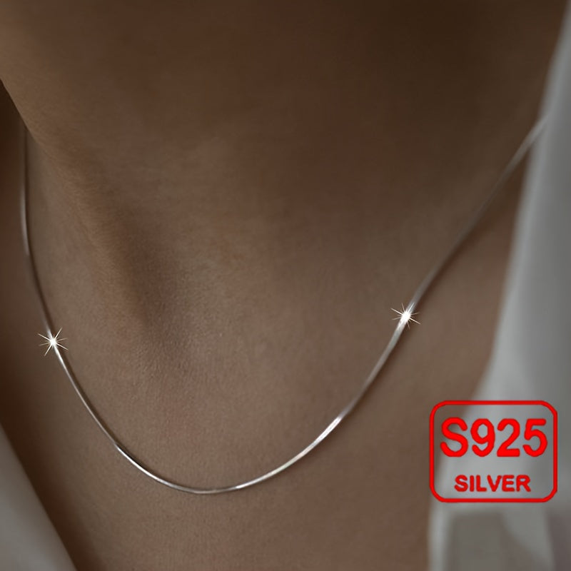 This 925 silver necklace features a round snake bone chain design that is hypoallergenic, perfect for those with sensitive skin. It's fashionable, ideal for couples or as a small clavicle chain for a trendy look.