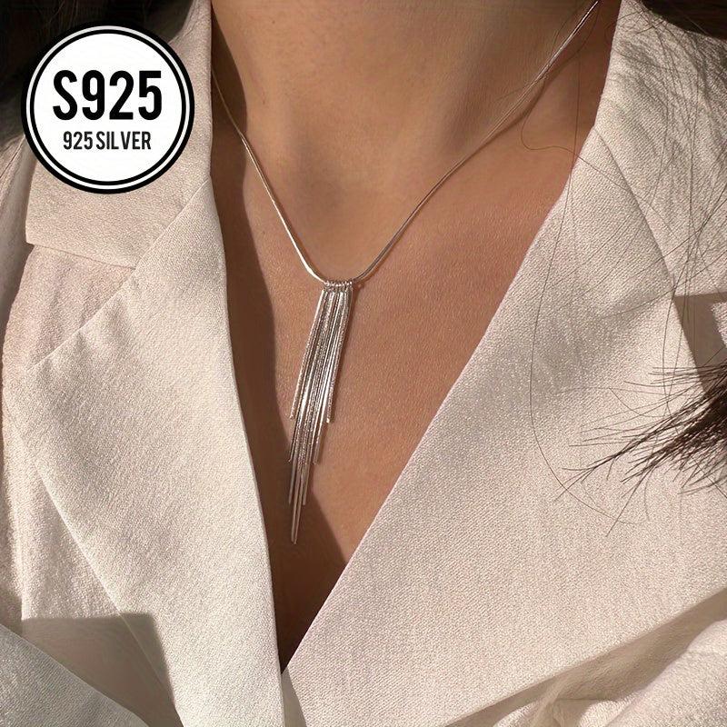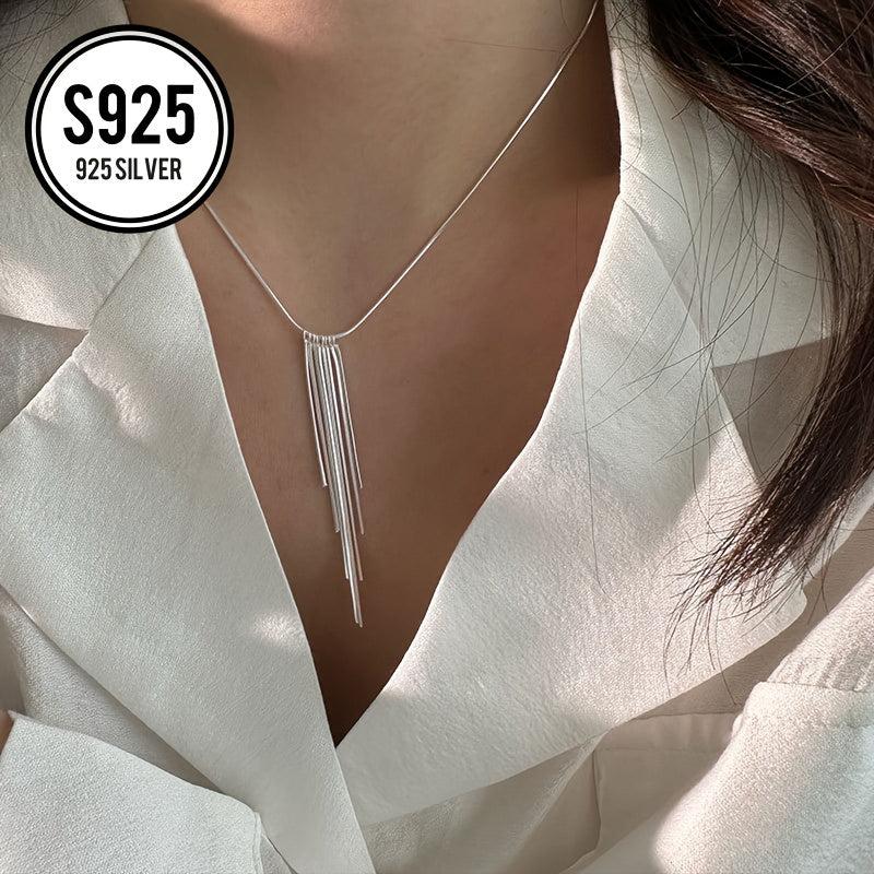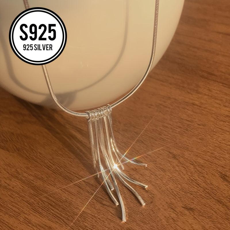 This hypoallergenic necklace features a snake bone chain tassel design, perfect for daily wear. Made of 925 silver, it is ideal for individuals with sensitive skin and brings a touch of elegance and style to any outfit.