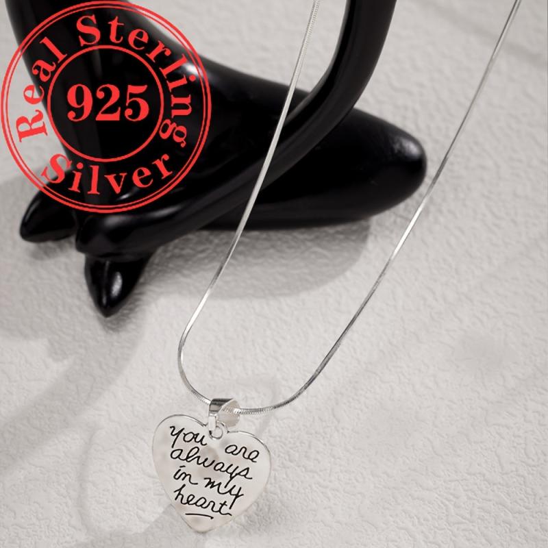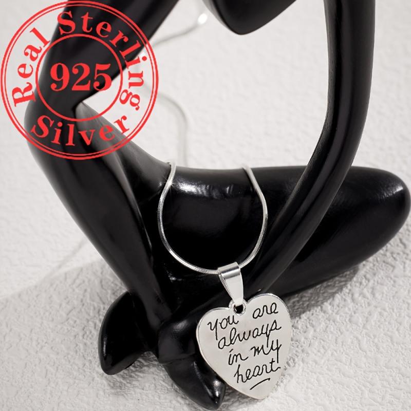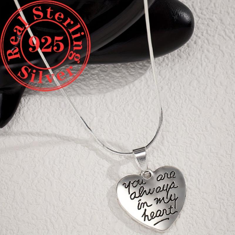 Show your love with this beautiful 925 silver necklace featuring a snake bone pendant with the phrase 'You Will Always Be In My Heart'. This heartfelt gift is perfect for your loved one.
