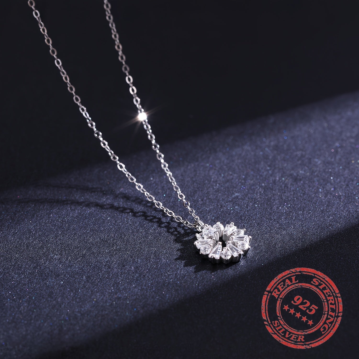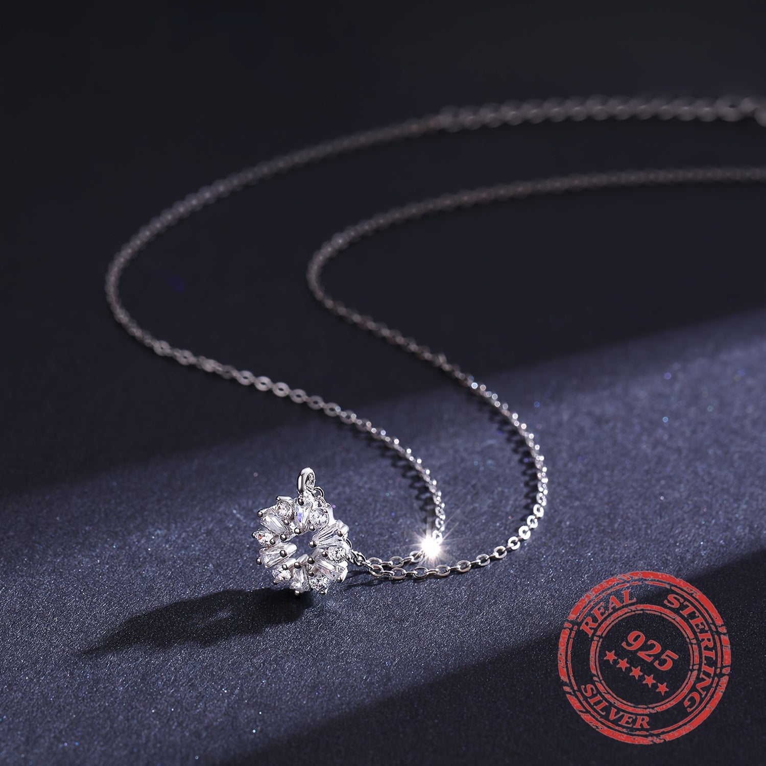 Dazzle at holiday parties with this stunning snowflake pendant necklace made of 925 sterling silver featuring sparkling cubic zirconia. Perfect for Christmas celebrations!