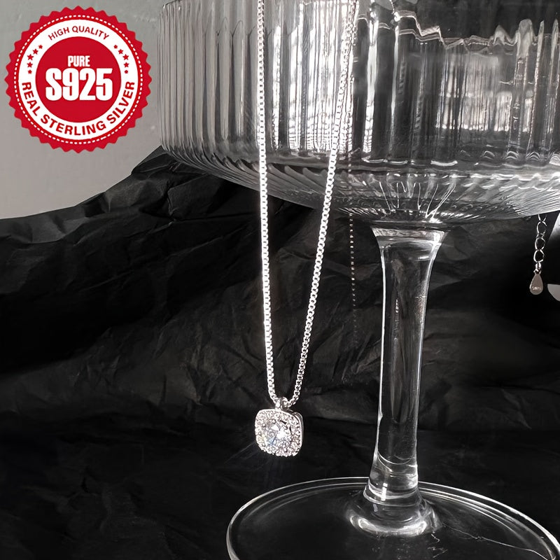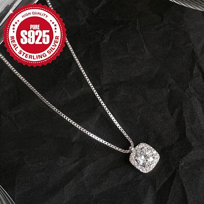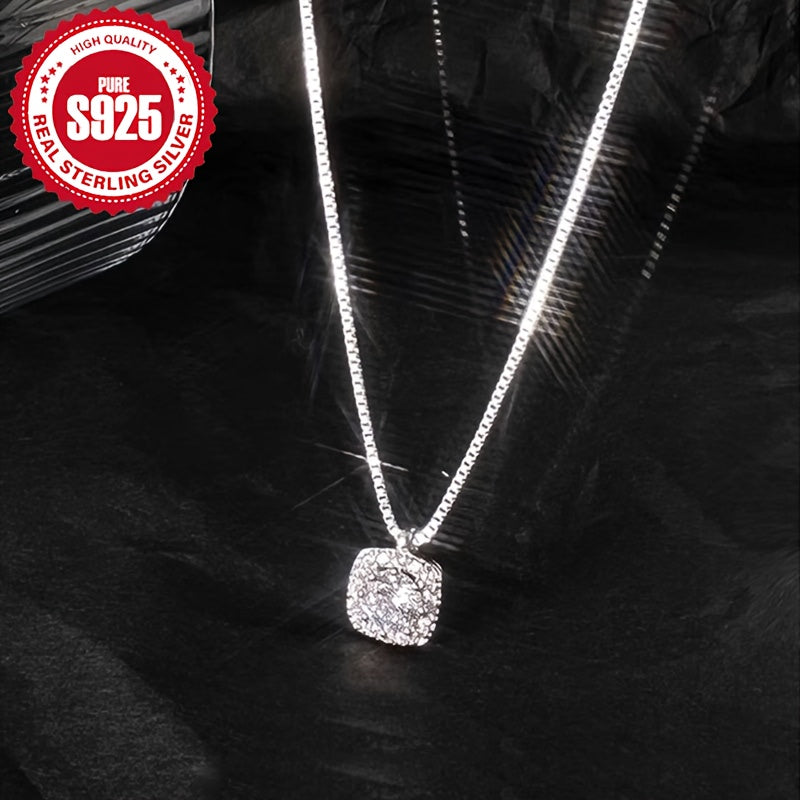 This stunning 925 silver necklace features a square zirconia pendant that adds a touch of elegance to any outfit. Perfect for daily wear or special occasions.