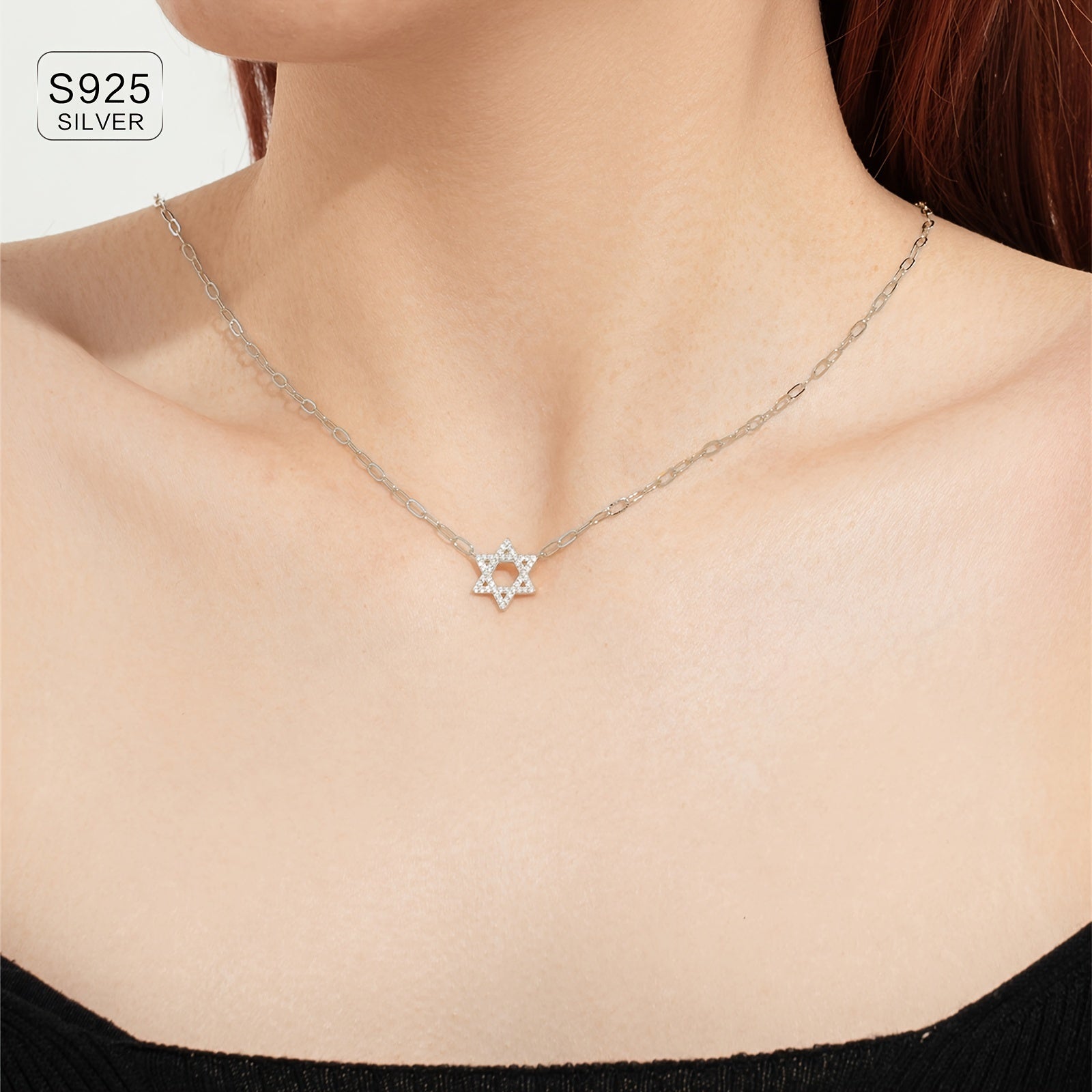 Elegant necklace with large chain and star pendant made of 925 silver, perfect for wedding parties and high-end occasions.