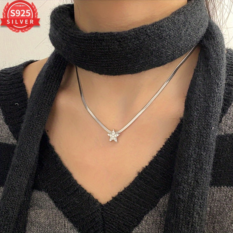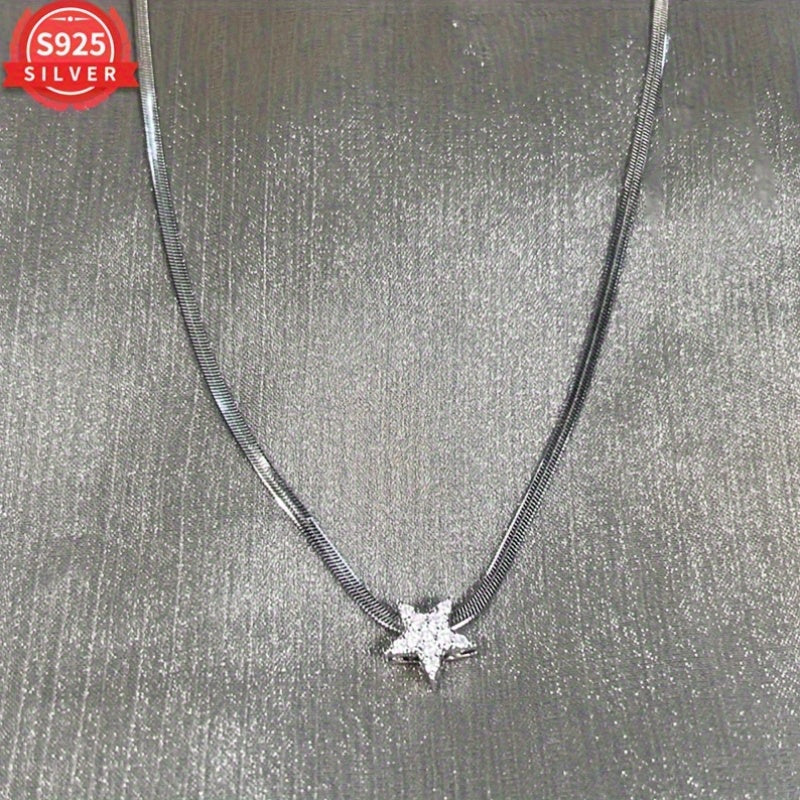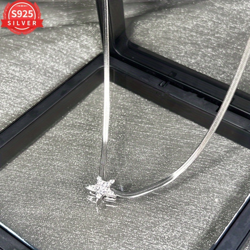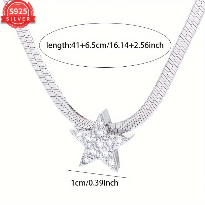 Elegant and stylish 925 sterling silver pendant necklace featuring a star and snake bone design. Perfect for any occasion, this clavicle chain is a versatile and unique accessory.