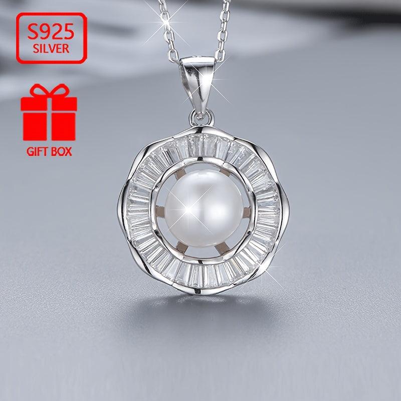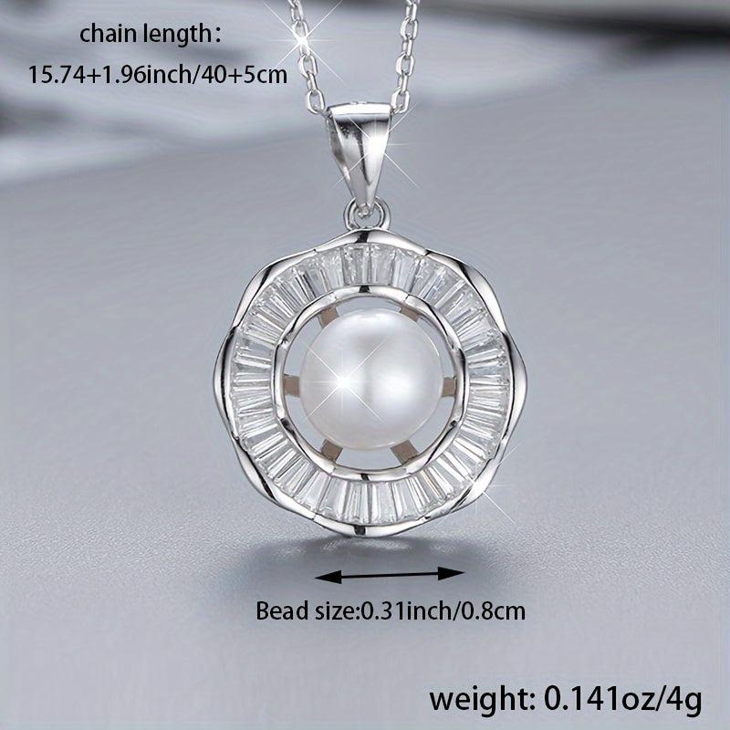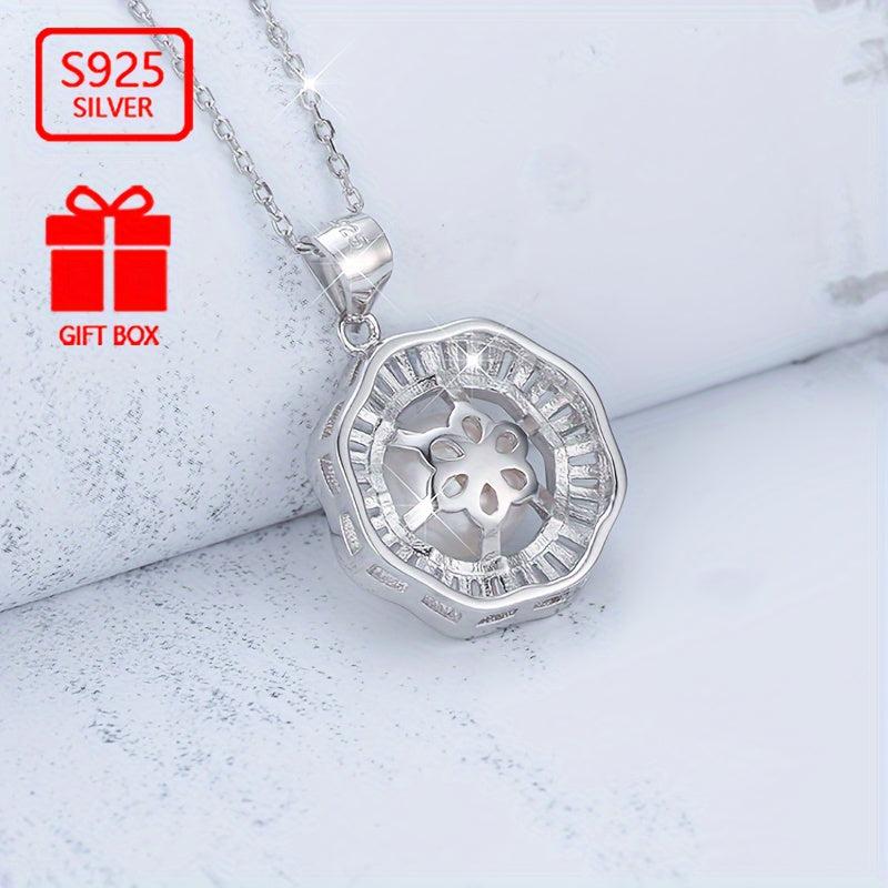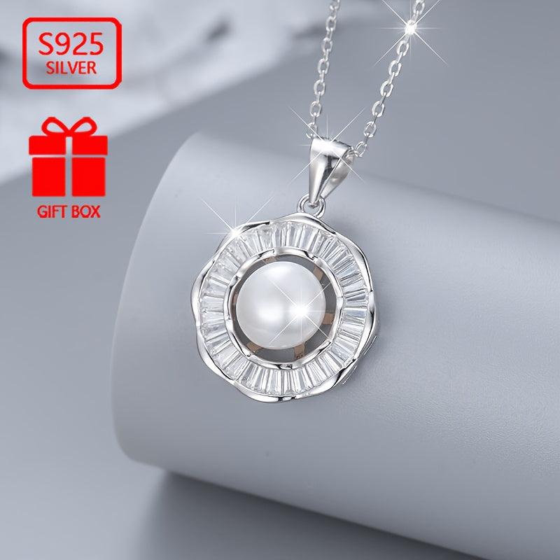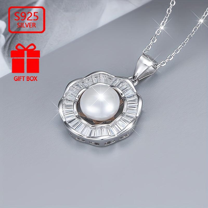 Enhance your style with this stunning 925 silver sun flower pendant necklace featuring an imitation pearl and micro set synthetic zirconia. Perfect for a chic look.