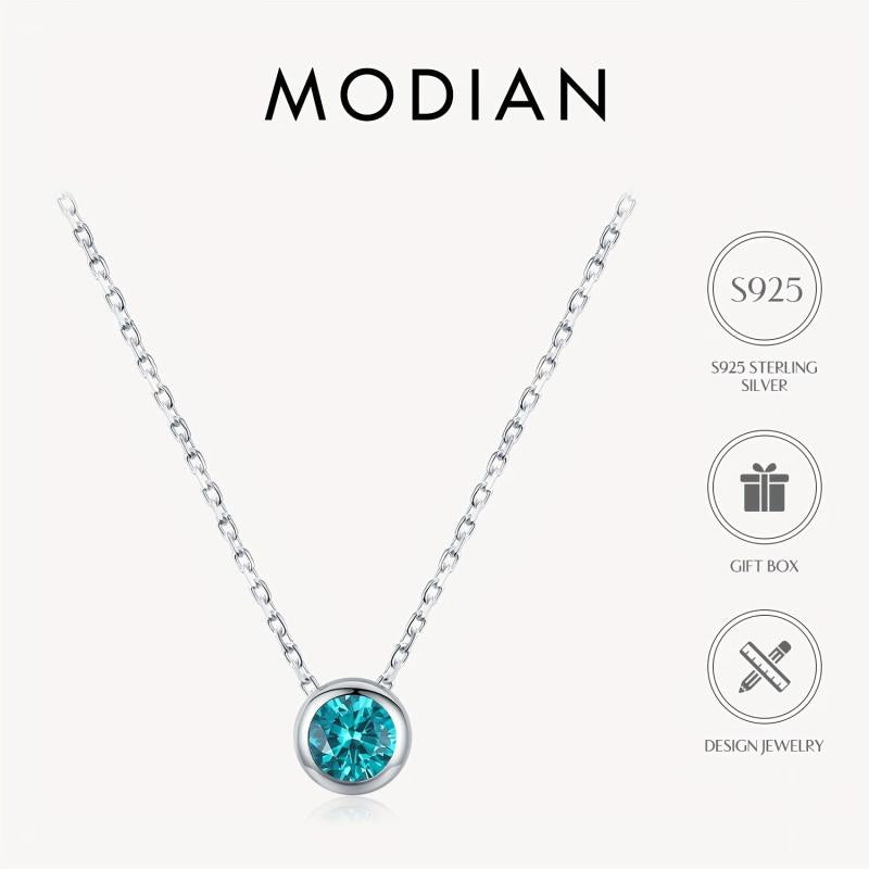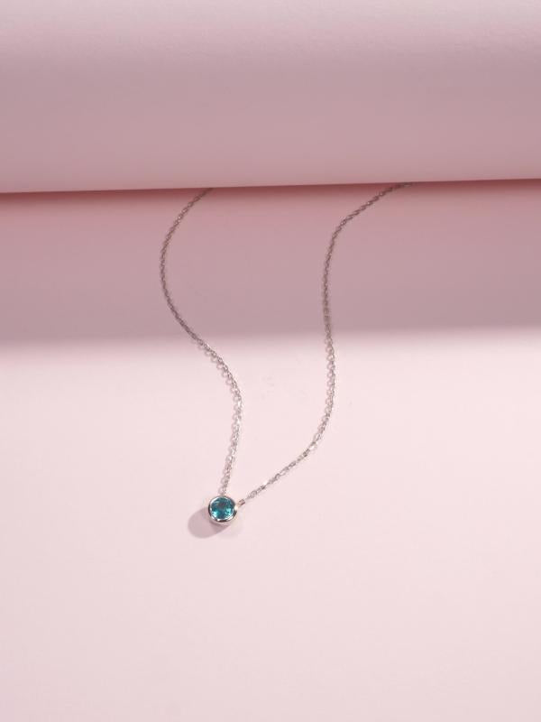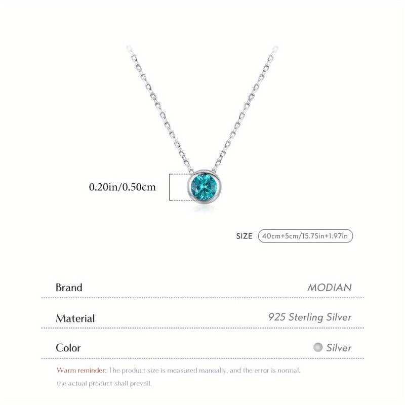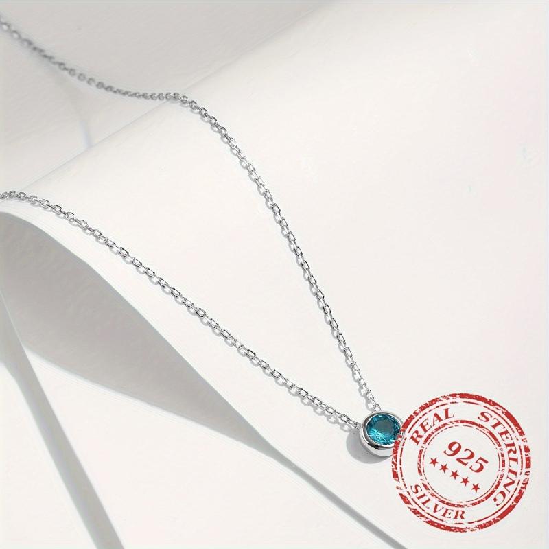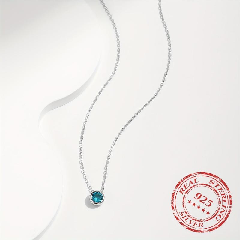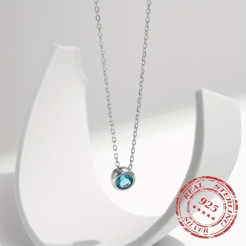 This stunning 925 sterling silver pendant necklace features a teal round zirconia, perfect for parties or as a thoughtful gift.