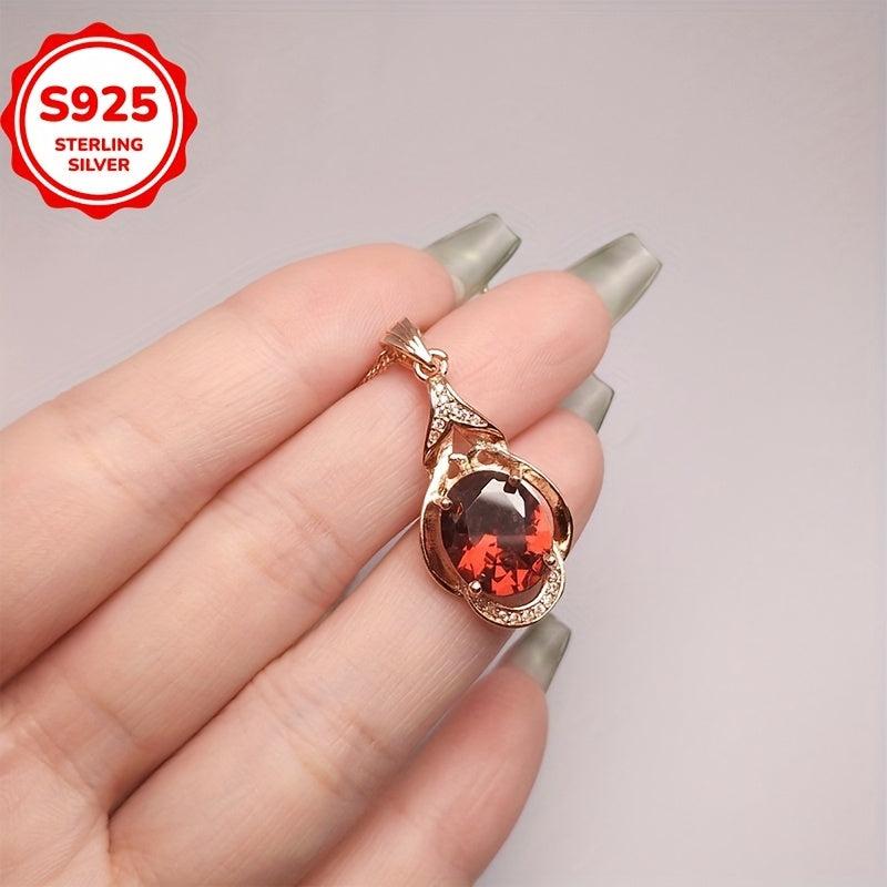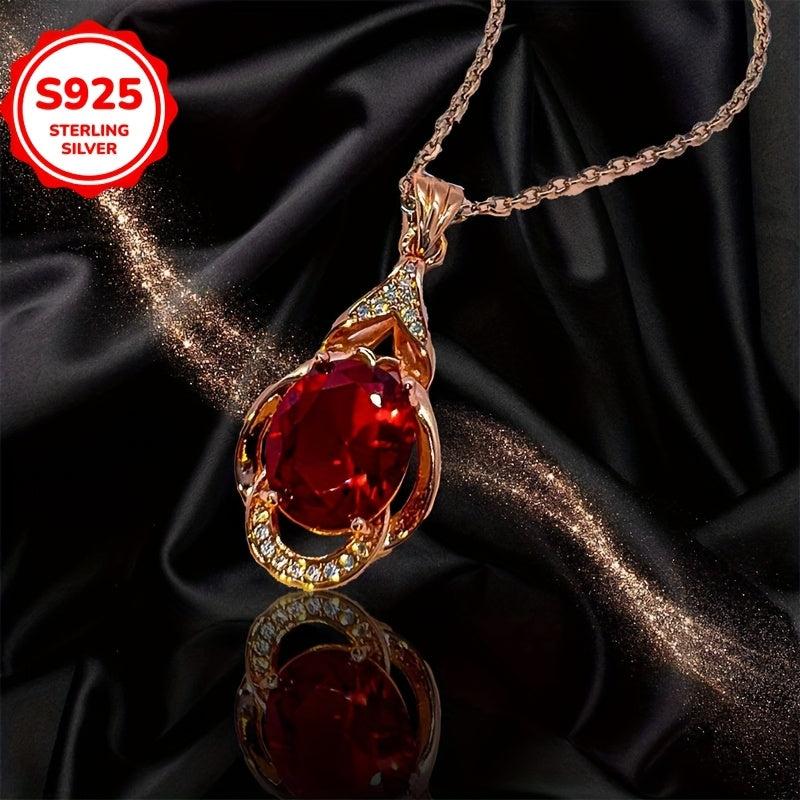 This stunning necklace features a teardrop pendant with sparkling red cubic zirconia. The 18K golden plated chain adds an elegant touch, making it perfect for daily wear or gifting all year round.