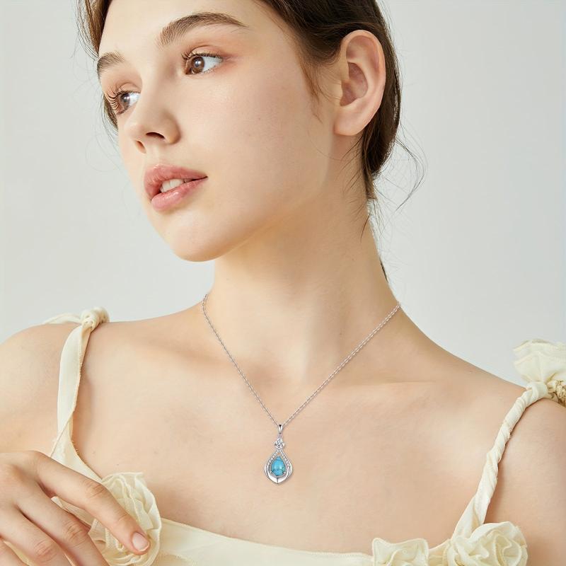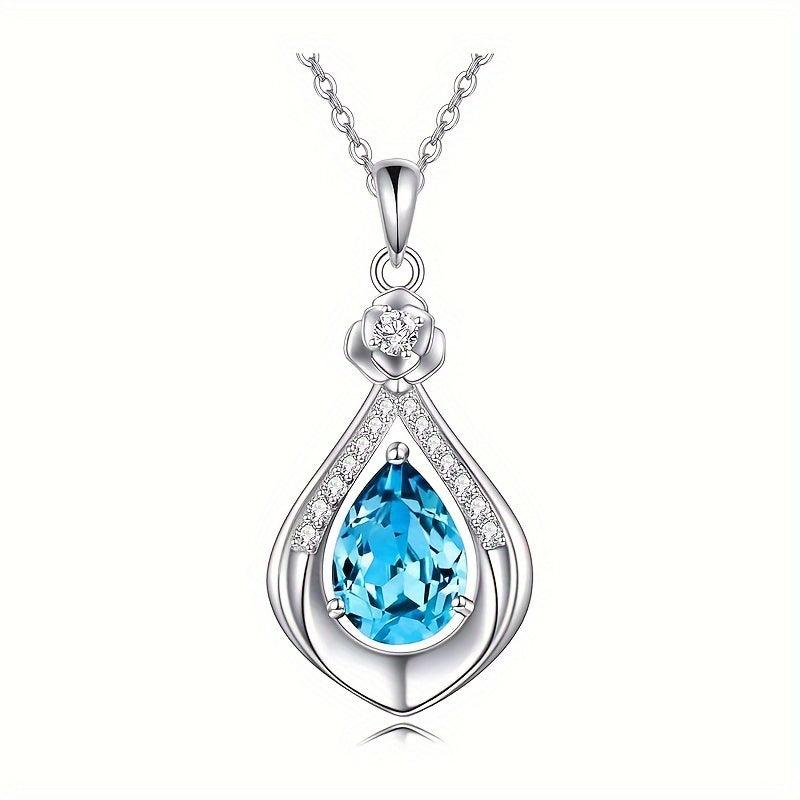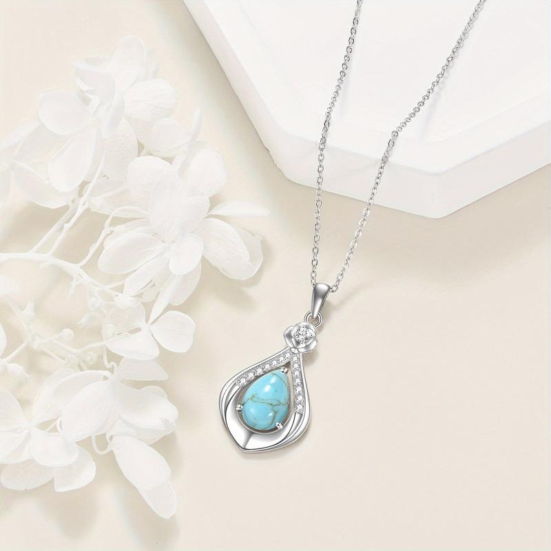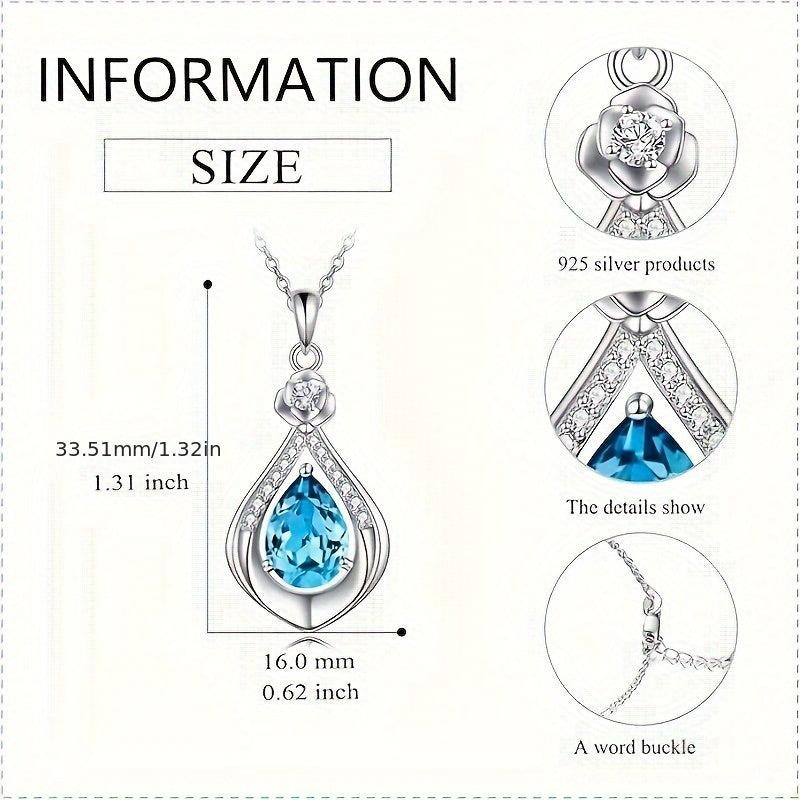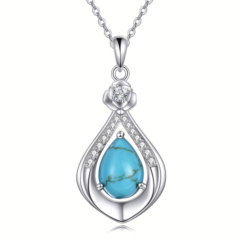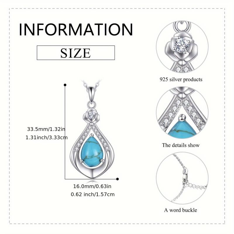Add a touch of elegance to any outfit with this stunning 925 sterling silver teardrop pendant necklace featuring a synthetic turquoise aquamarine stone and a beautiful rose flower design. This versatile jewelry piece is a perfect gift for women of all ages.