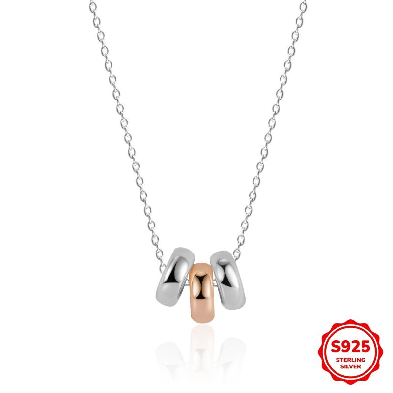 This elegant necklace features three interlocking rings made of 925 sterling silver. It is perfect for everyday wear or as a thoughtful gift for a loved one.
