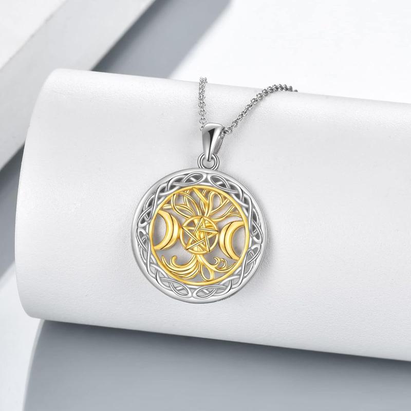 This elegant necklace features a Triple Moon Goddess pendant, perfect for Wiccan and Pagan women. Made of high-quality 925 sterling silver.