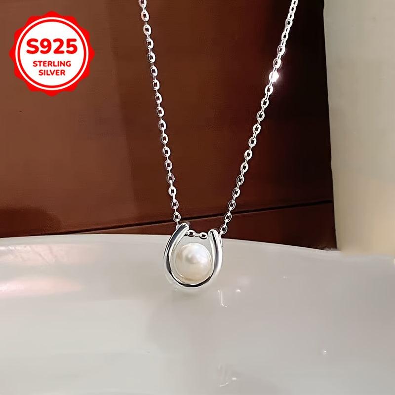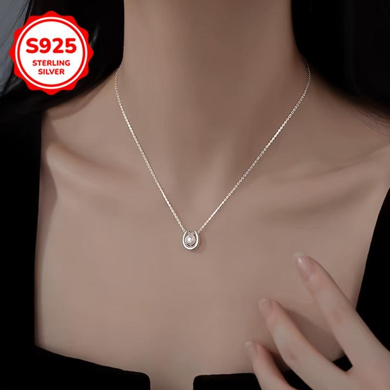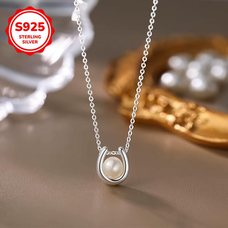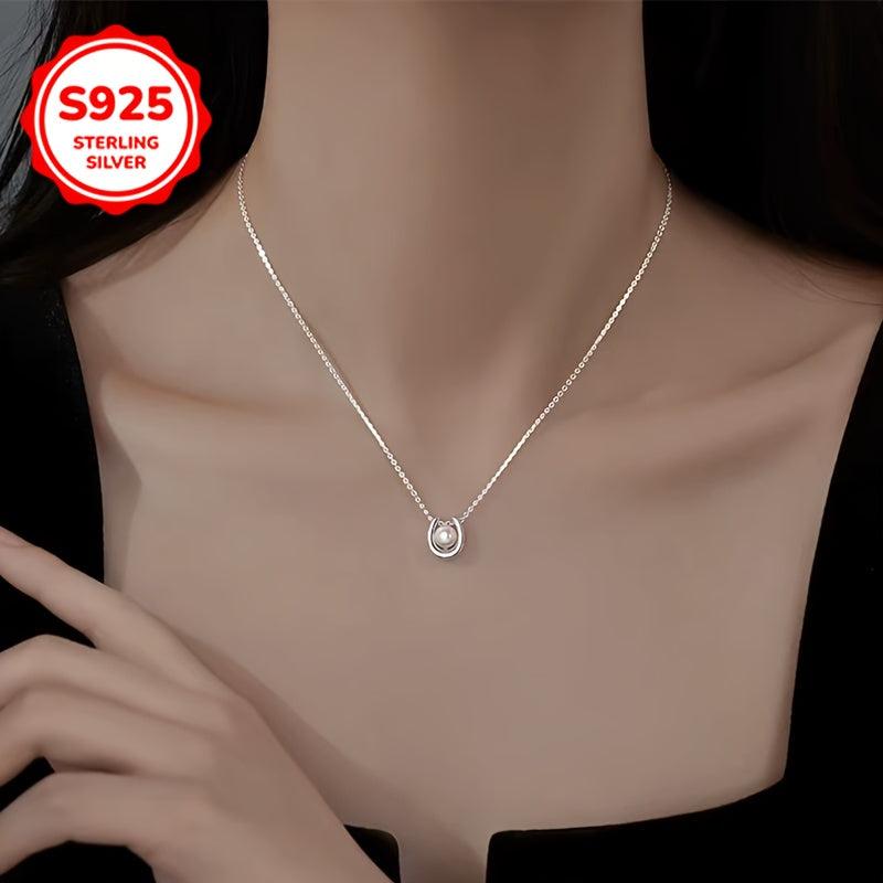 Elegant and hypoallergenic U shape pendant necklace made of 925 silver with a vintage touch. Ideal for sensitive skin.