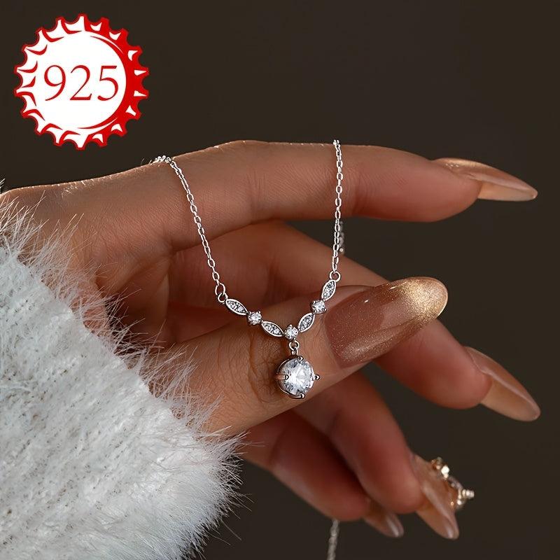 This one-piece necklace features a V shaped water drop pendant, made of hypoallergenic 925 silver. It exudes a fashionable and personality light, versatile temperament, perfect for a niche, high-end clavic look.