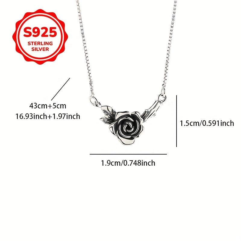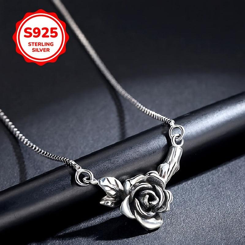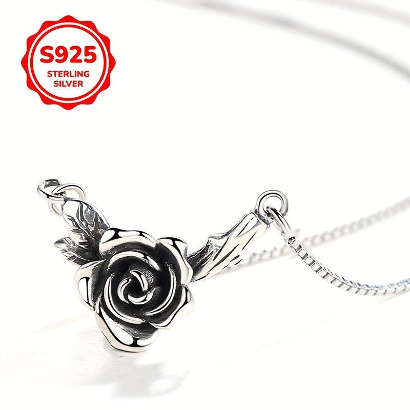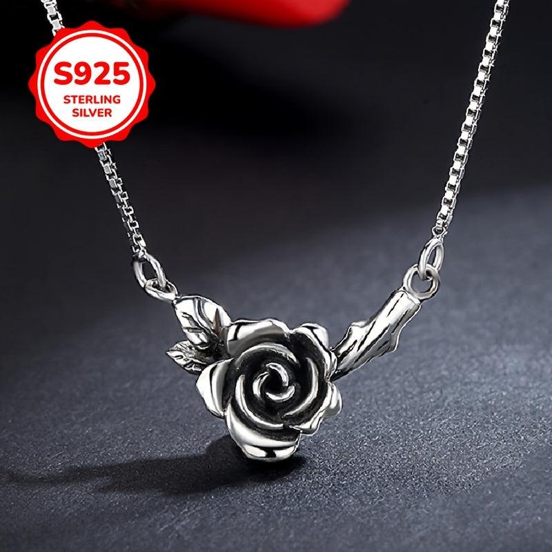 Add a touch of vintage charm to your outfit with this 925 silver rose necklace featuring a distressed design. Minimalist and lightweight, perfect for everyday wear.