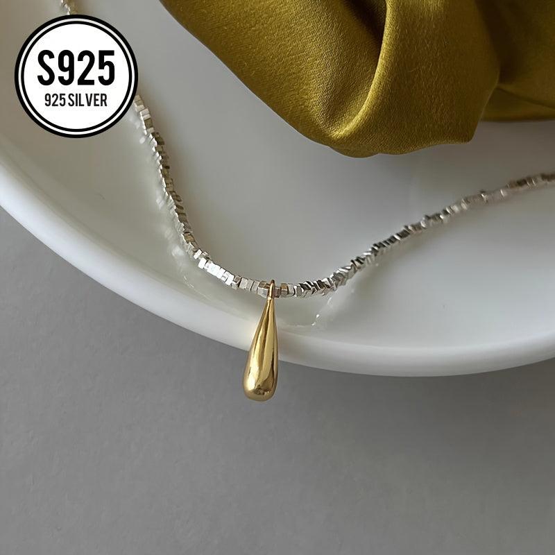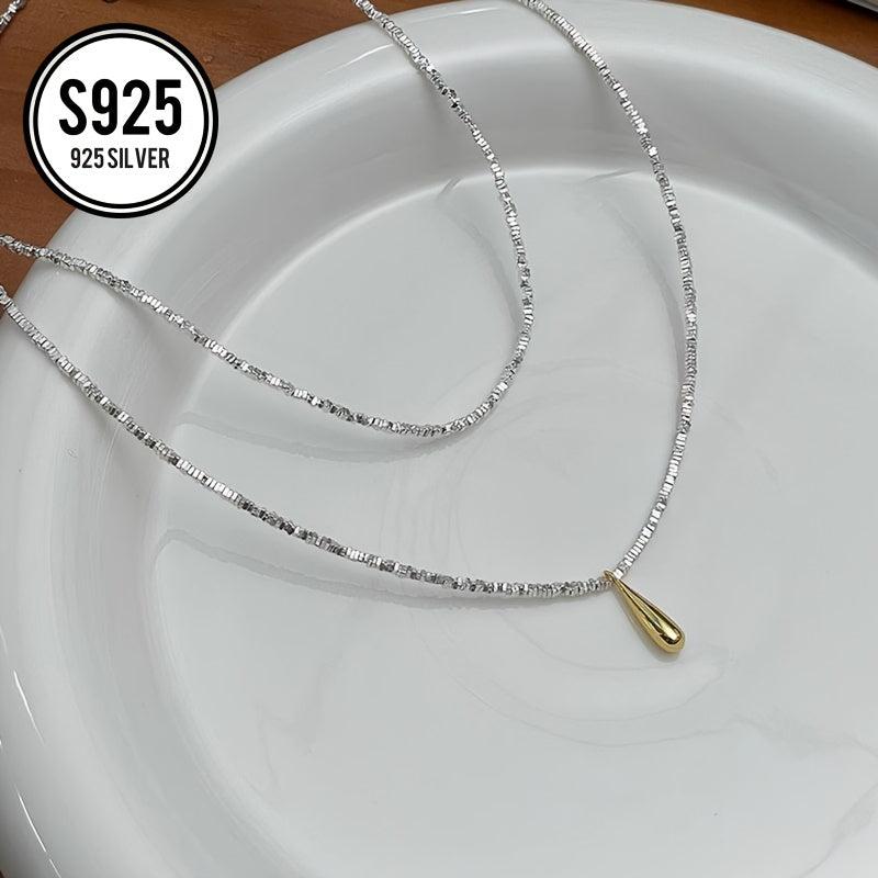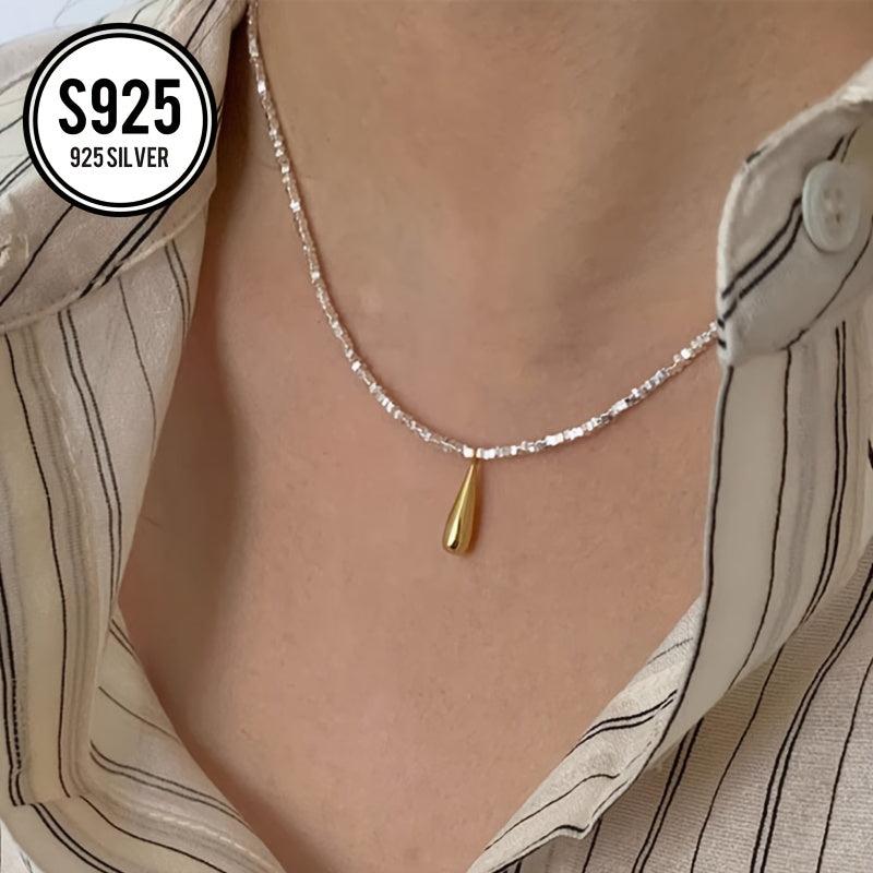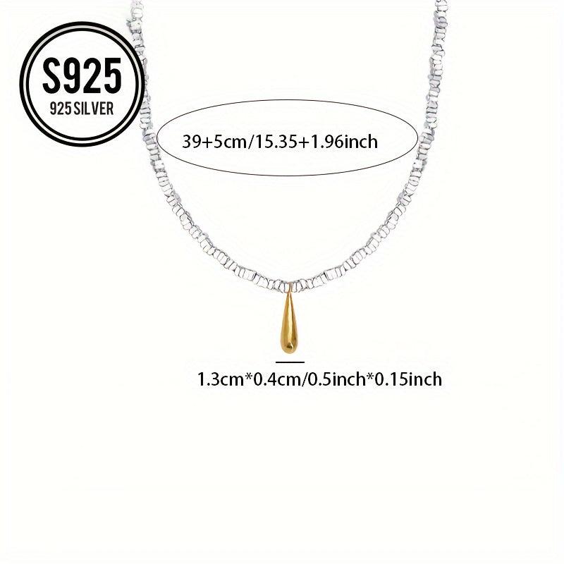 This elegant necklace features a broken silver golden water drop pendant on a light style silver block bead texture chain. Perfect for daily wear or as a couple gift.