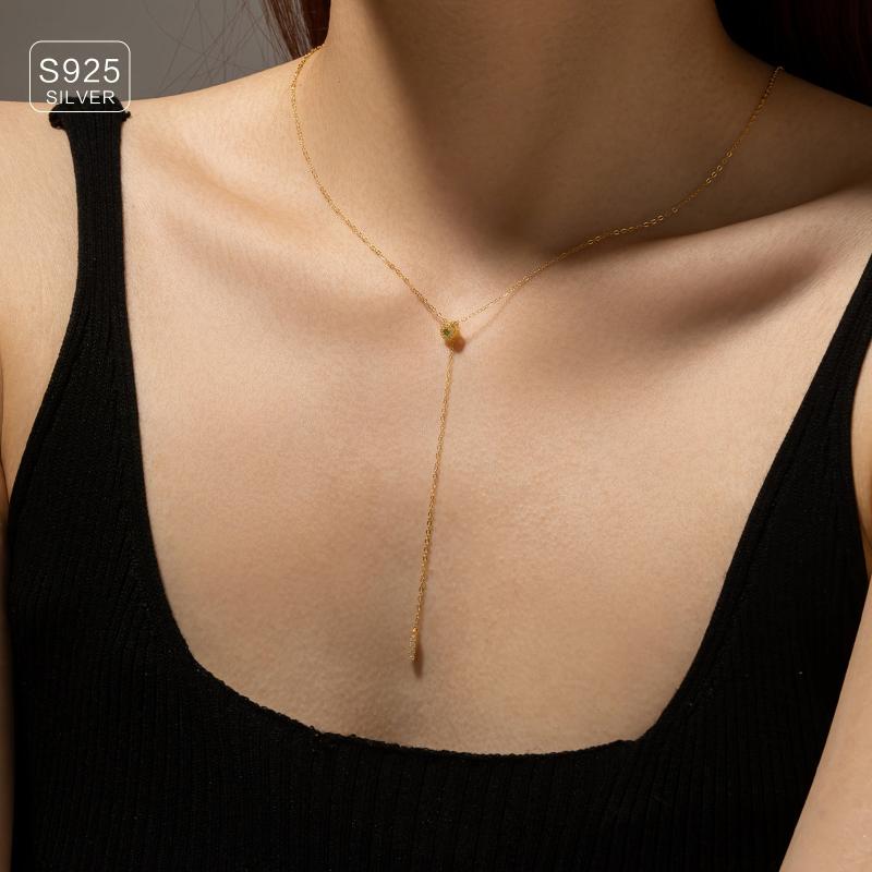 Elegant 925 sterling silver Y shape necklace set featuring sparkling synthetic zirconia. Perfect for women's party and special occasion wear.