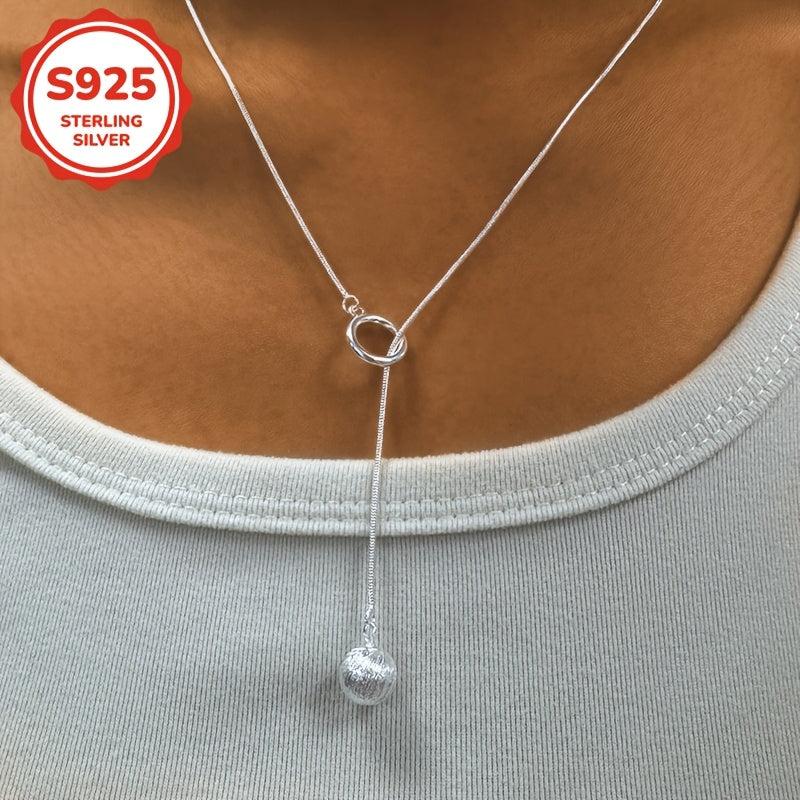 Elegant and versatile, this Y shaped necklace features a small round ball pendant. Made of 925 silver, it's a perfect holiday gift for a loved one or yourself. Enhance your casual attire with this chic accessory.