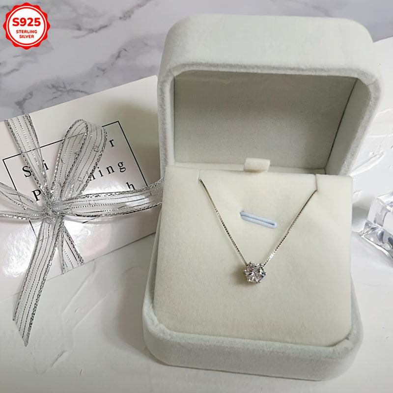 Elegant and versatile, this six prong zirconia necklace is perfect for all occasions. Its clavicle chain design makes it a great gift for women.