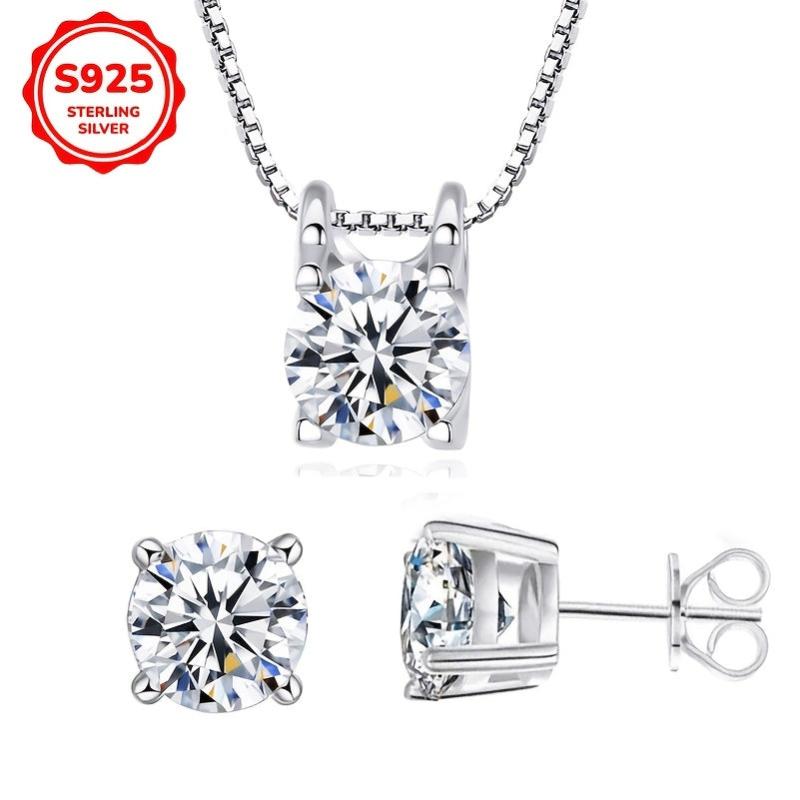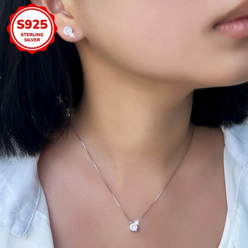 This elegant jewelry set includes a pendant necklace and earrings featuring 6mm round cut synthetic zirconia in a 925 pure silvery setting. Perfect for those with low allergy sensitivity.