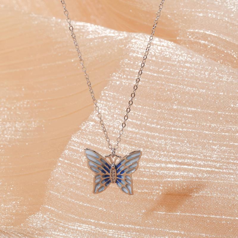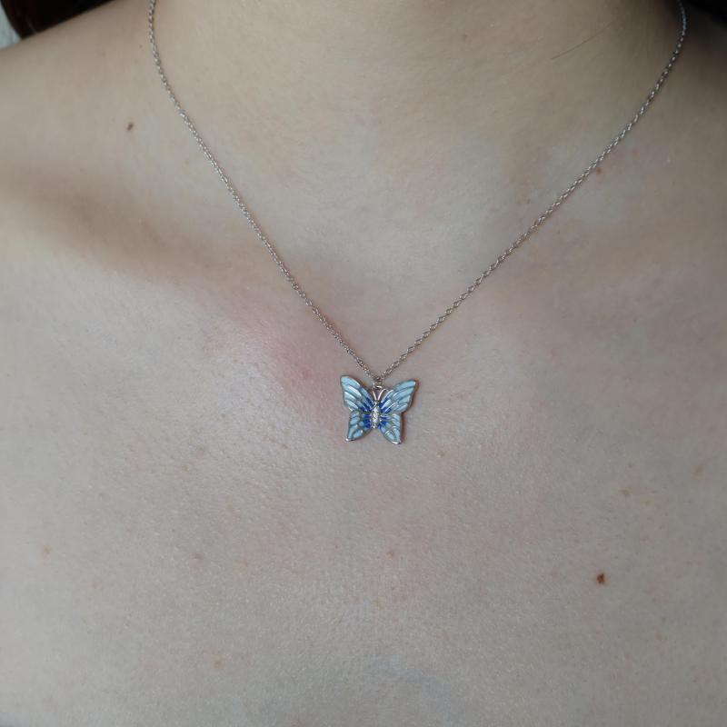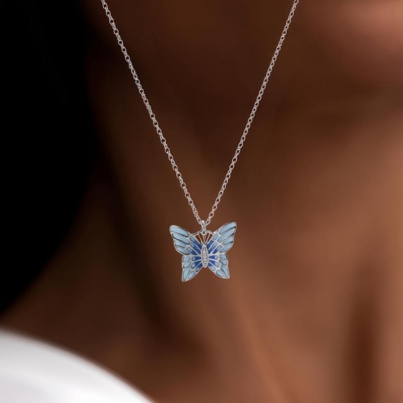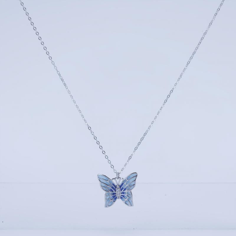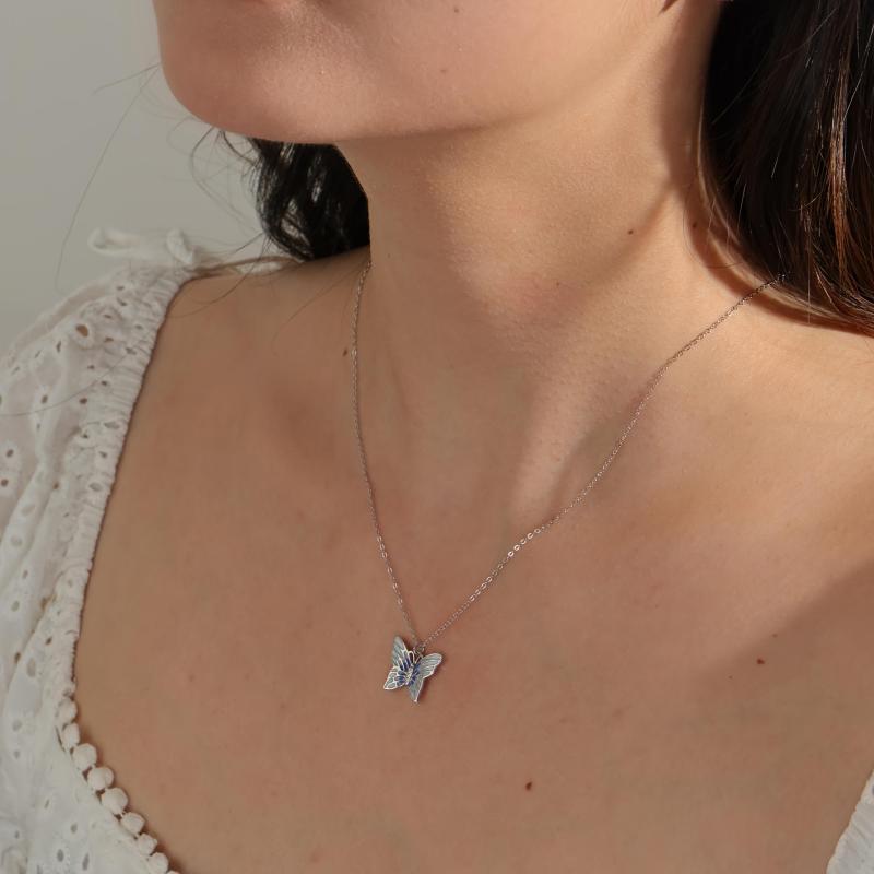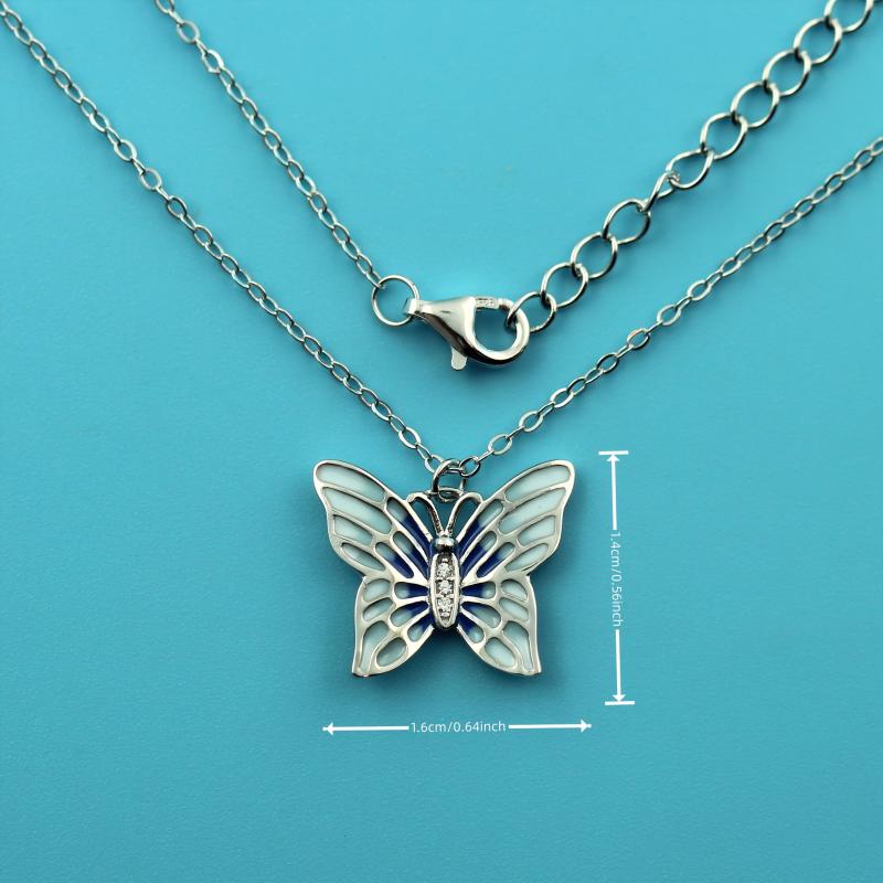 Elegant and light butterfly necklace made of 925 pure silver. Perfect gift for your wife or girlfriend on special occasions. Adjustable size with a gift box.