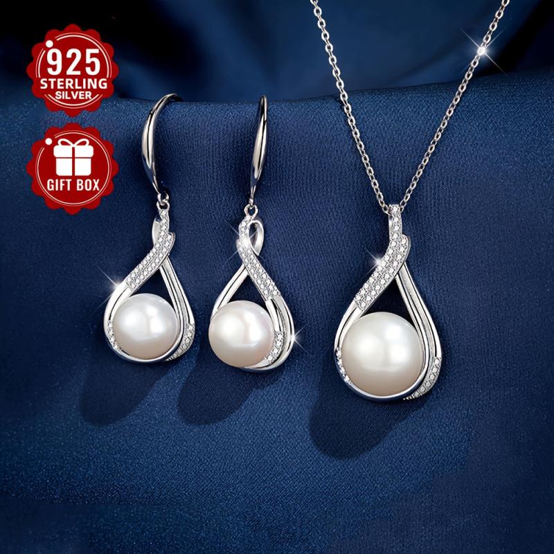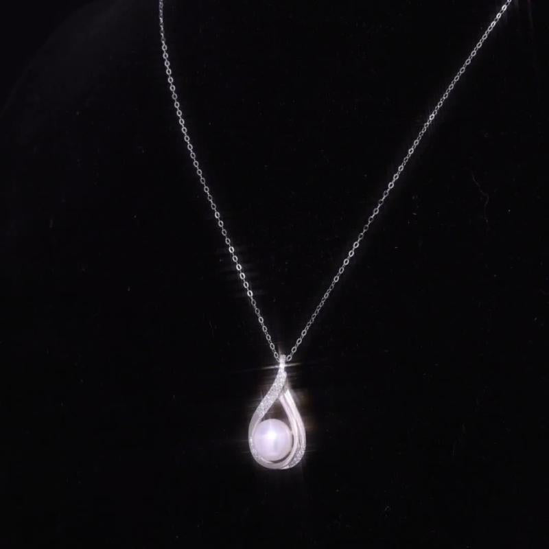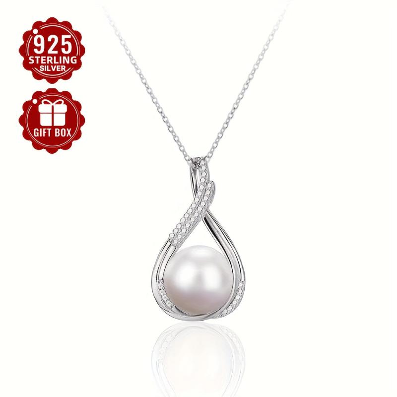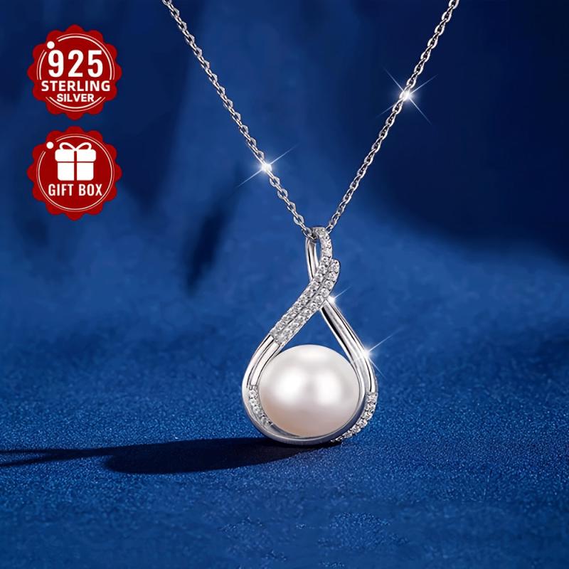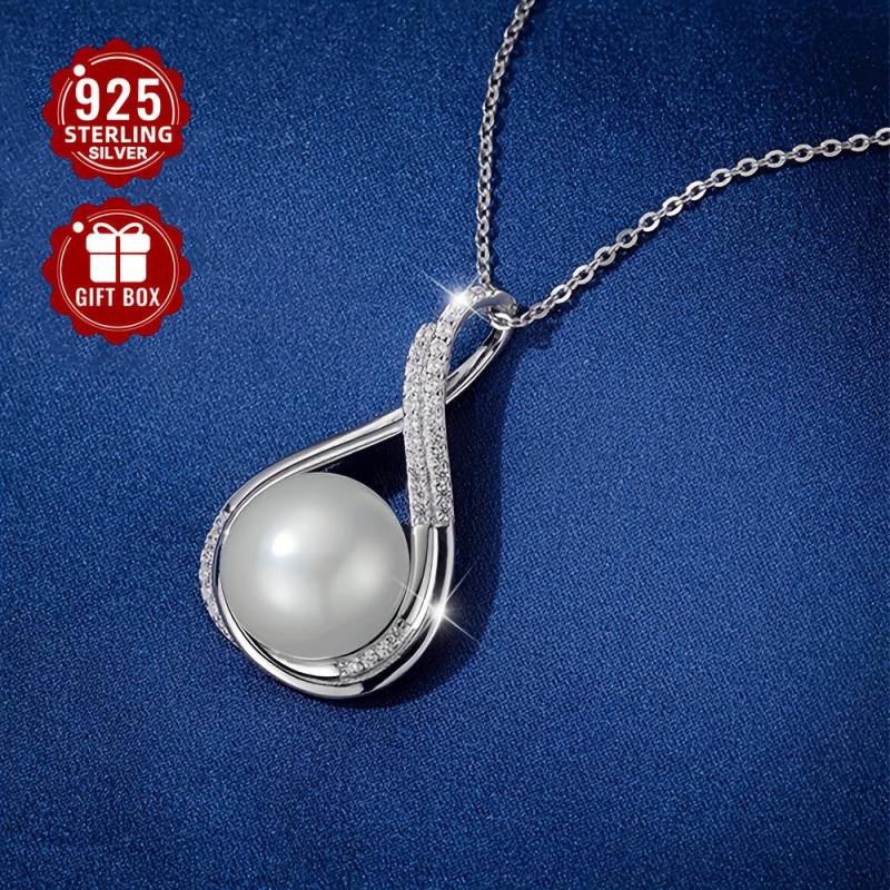 French classic women's necklace with a water drop design and imitation pearl pendant.